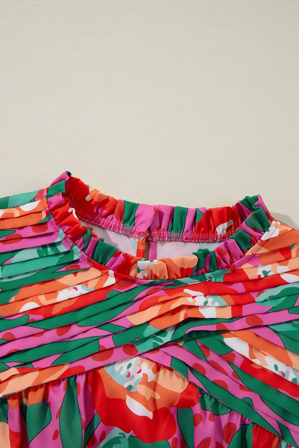 Plus size floral ruffle blouse ‐ Rose / 2X / 100%Polyester