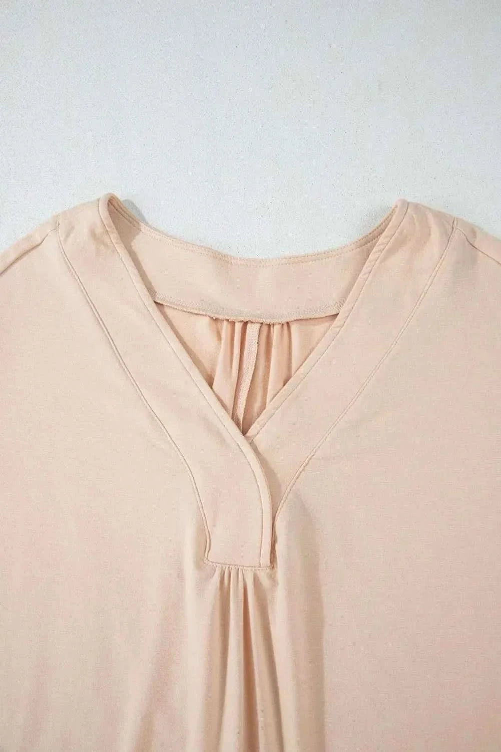 Printed V-Neck Long Sleeve Blouse ‐ Dust Storm / XL