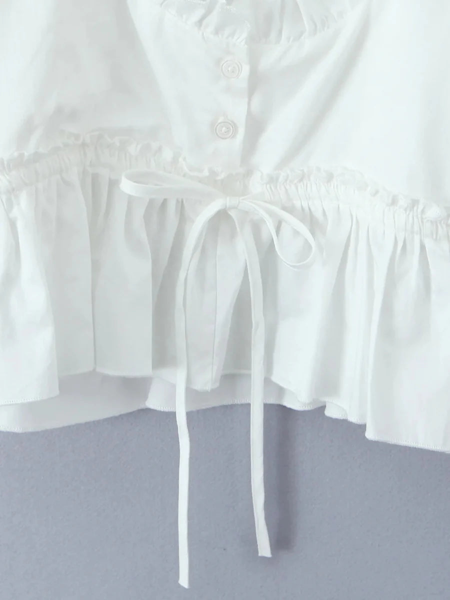 Puff Sleeve Ruffle Crop Blouse ‐ White / L