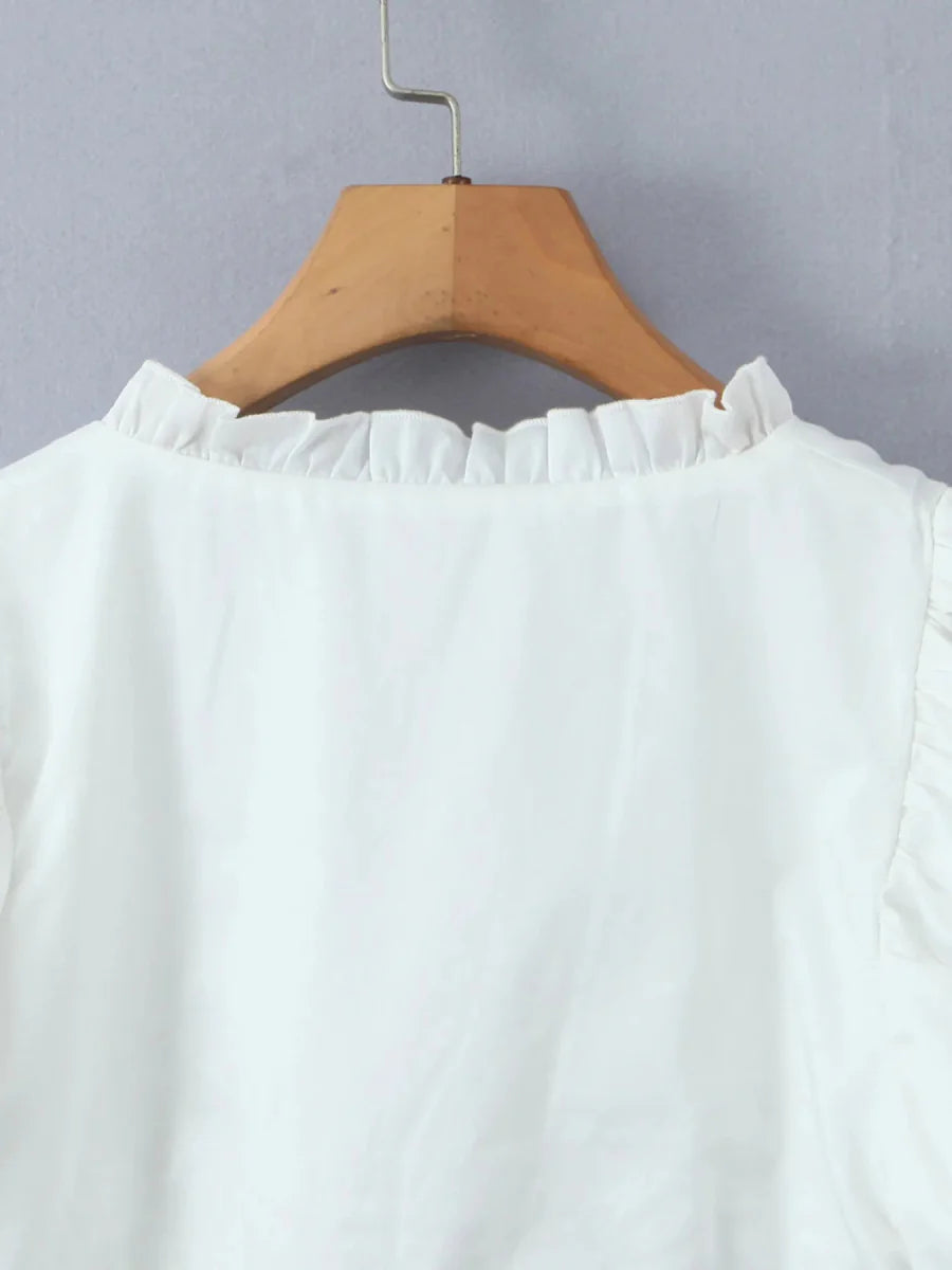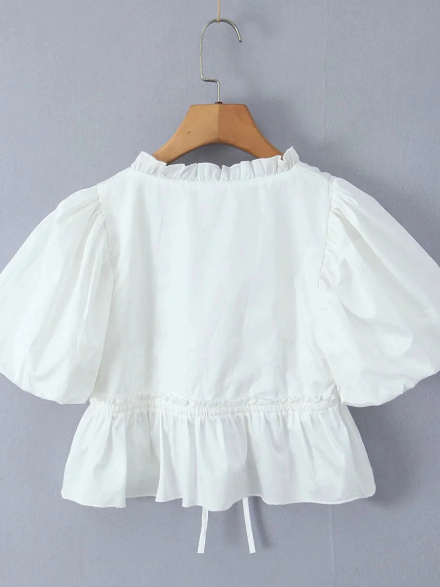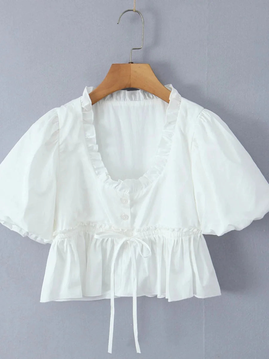 Puff Sleeve Ruffle Crop Blouse