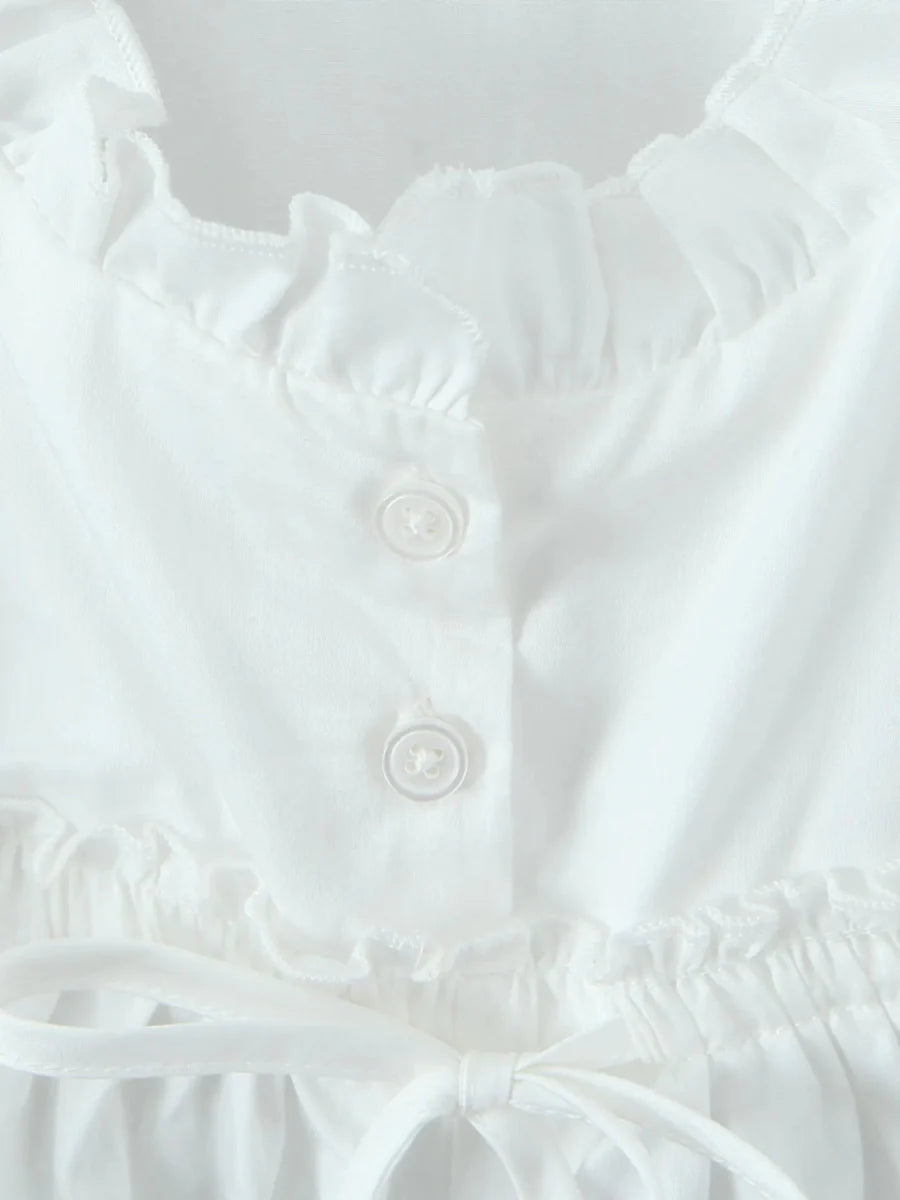 - Features:Tied,Frill,Ruffled,Buttoned