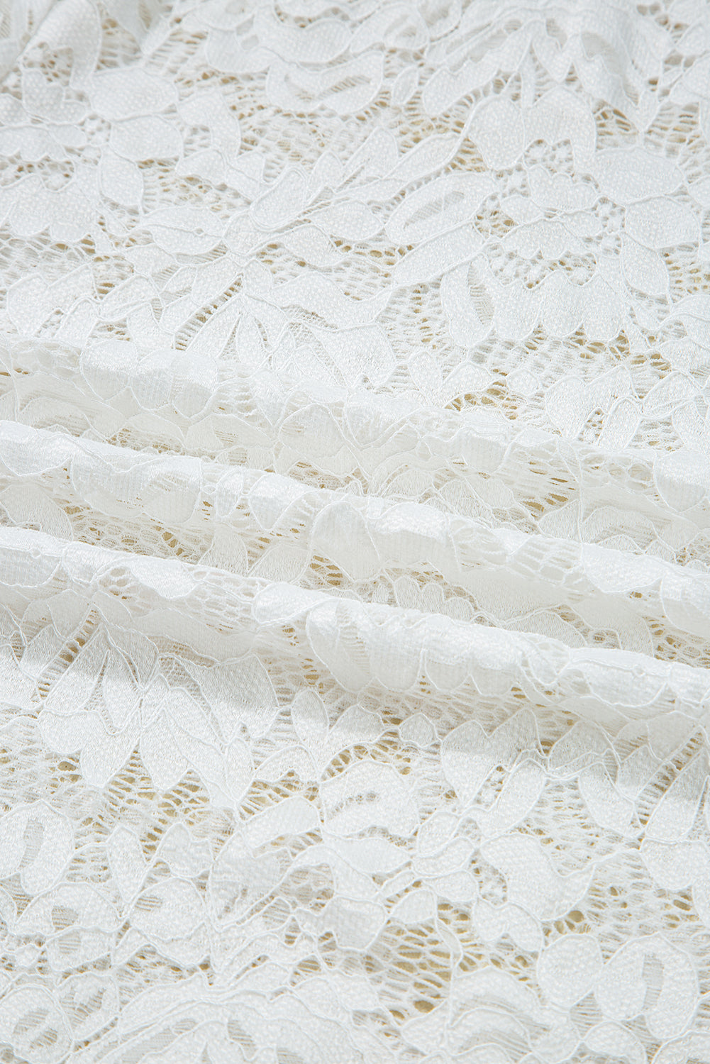 Solid Lace Crochet Bell Sleeve Blouse ‐ White / XL