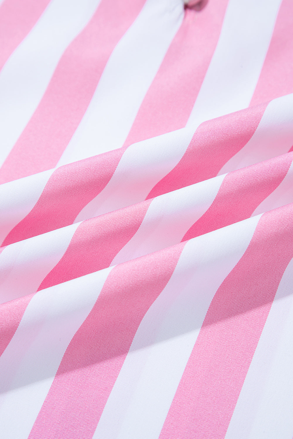 Stripe Puff Sleeve Buttoned V-Neck Blouse ‐ Rose Stripe / XL