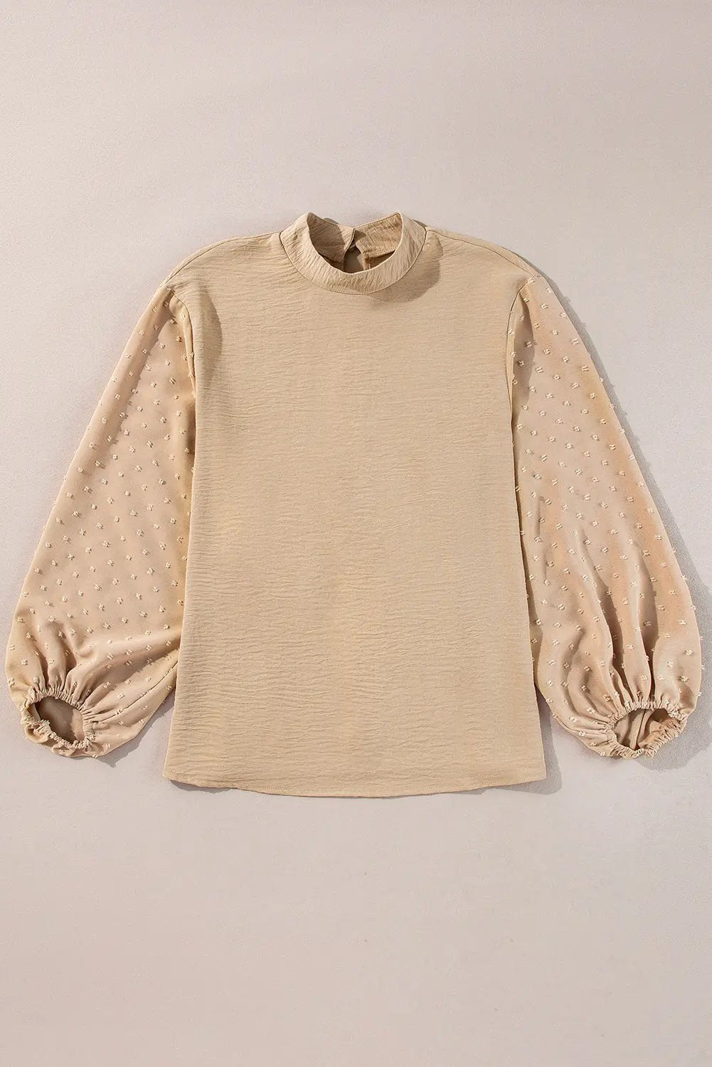 Premium June Swiss Dot Balloon Sleeve Blouse with Keyhole Back Closure