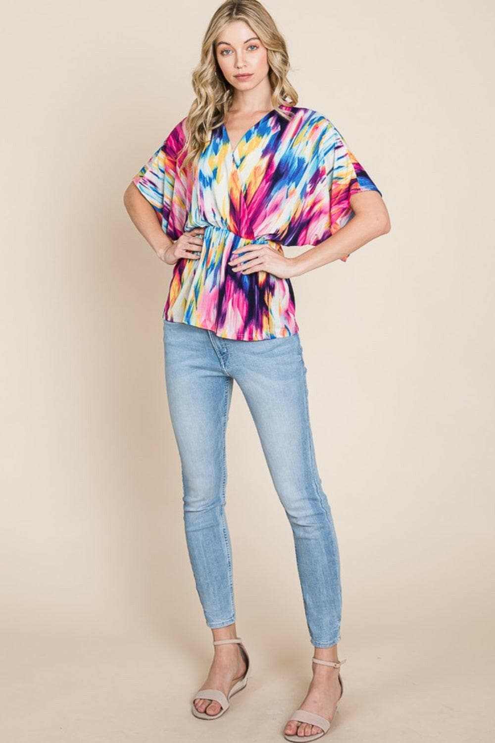 BOMBOM Printed Surplice Peplum Blouse ‐ Multicolor / S