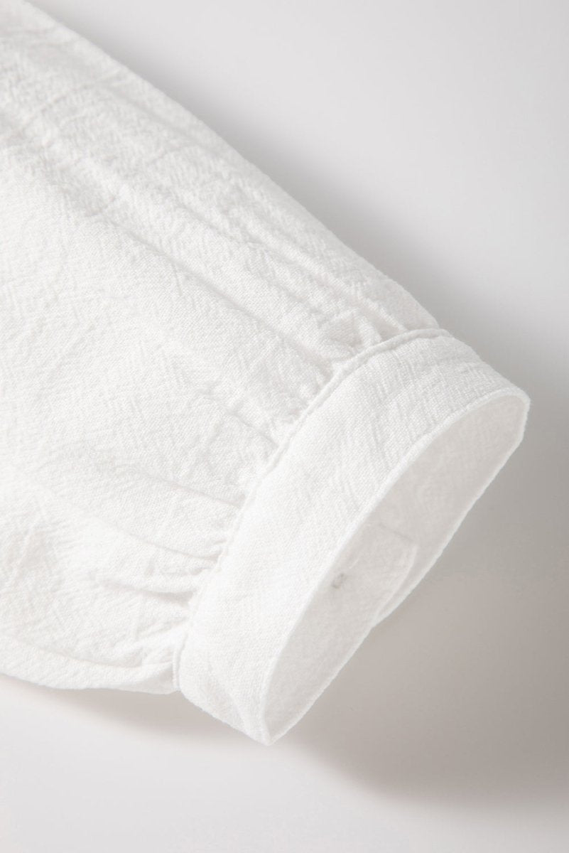 White Geometric Embroidered Long Sleeve Blouse for Women ‐ White / S / 100%Cotton