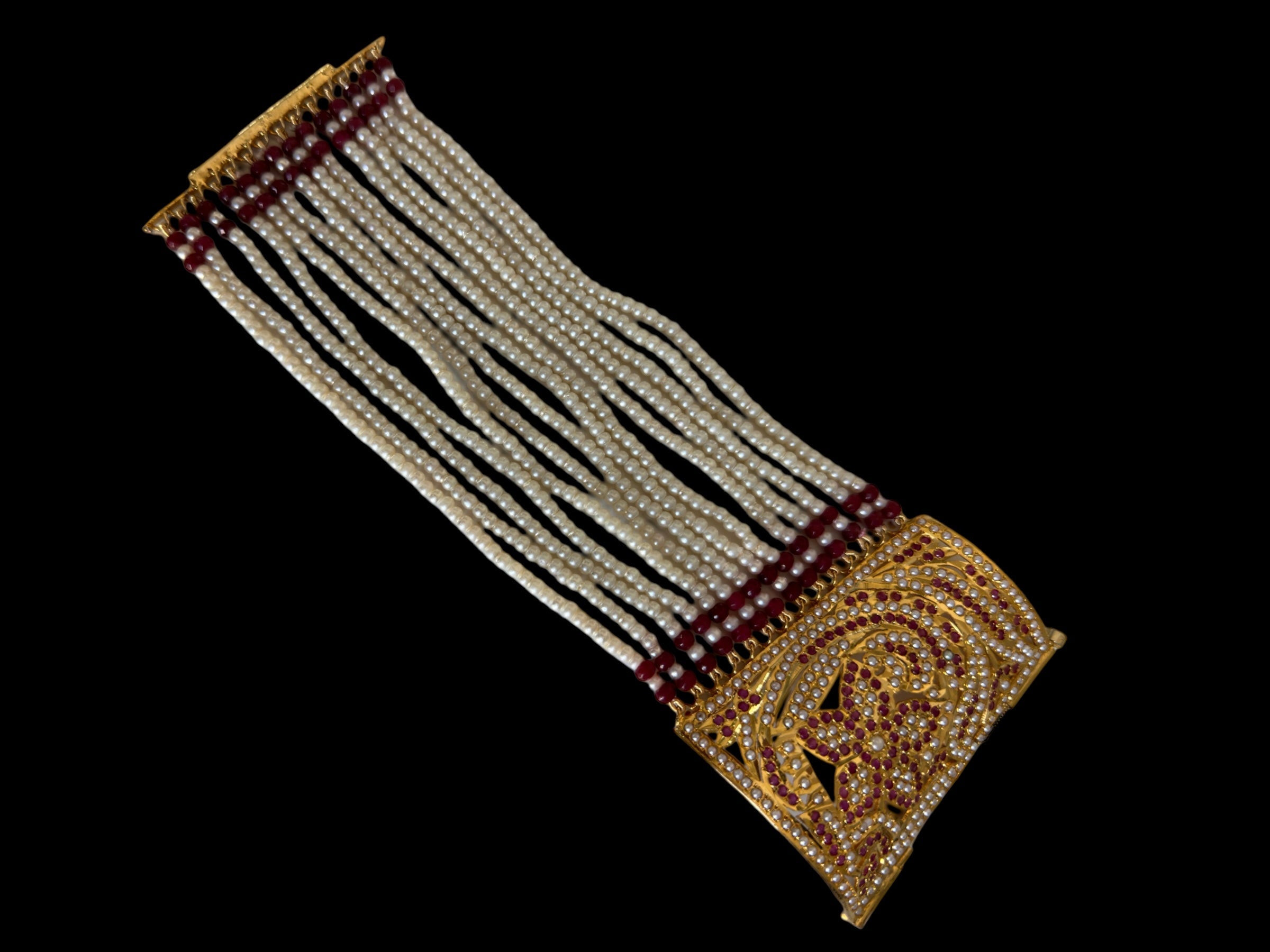 B198 Jadau bahi / bracelet - Ruby pearl ( READY TO SHIP )