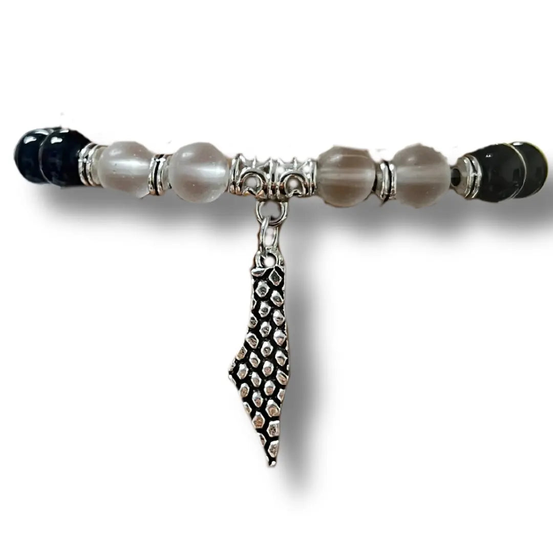 Handcrafted Black Beads and Gems Silver Palestine Bracelet – Elegant Cultural Heritage