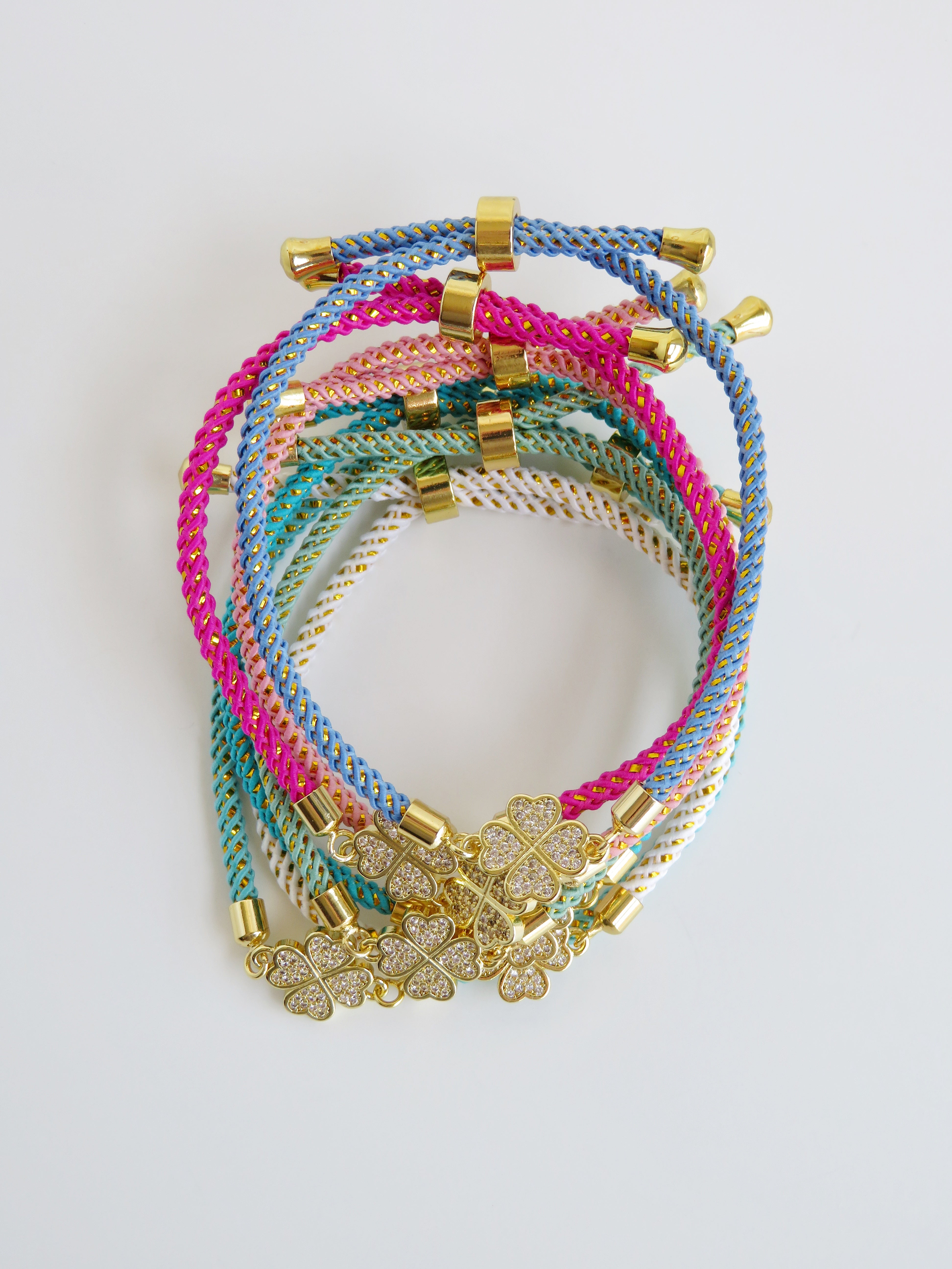 Heart Clover Bracelet - Adjustable Braided Cord ‐ Pink