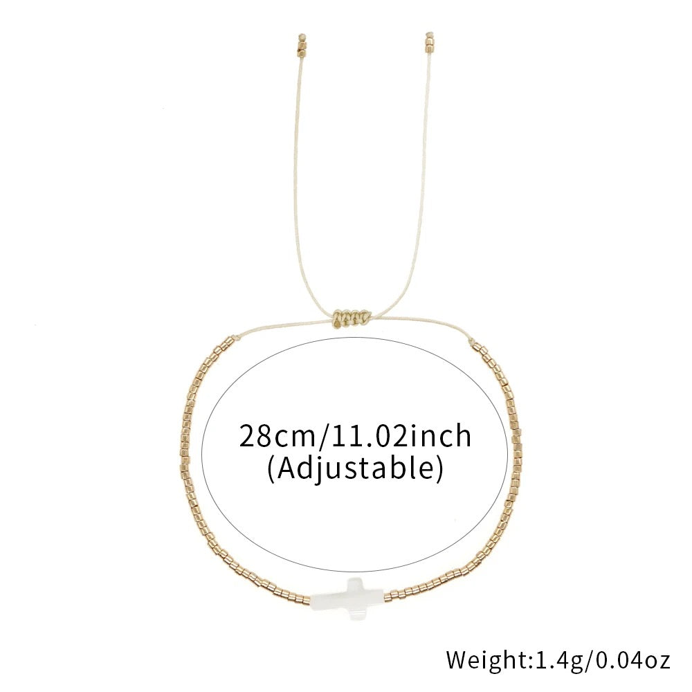Pearl Shell Holy Cross Beaded Adjustable Bracelet