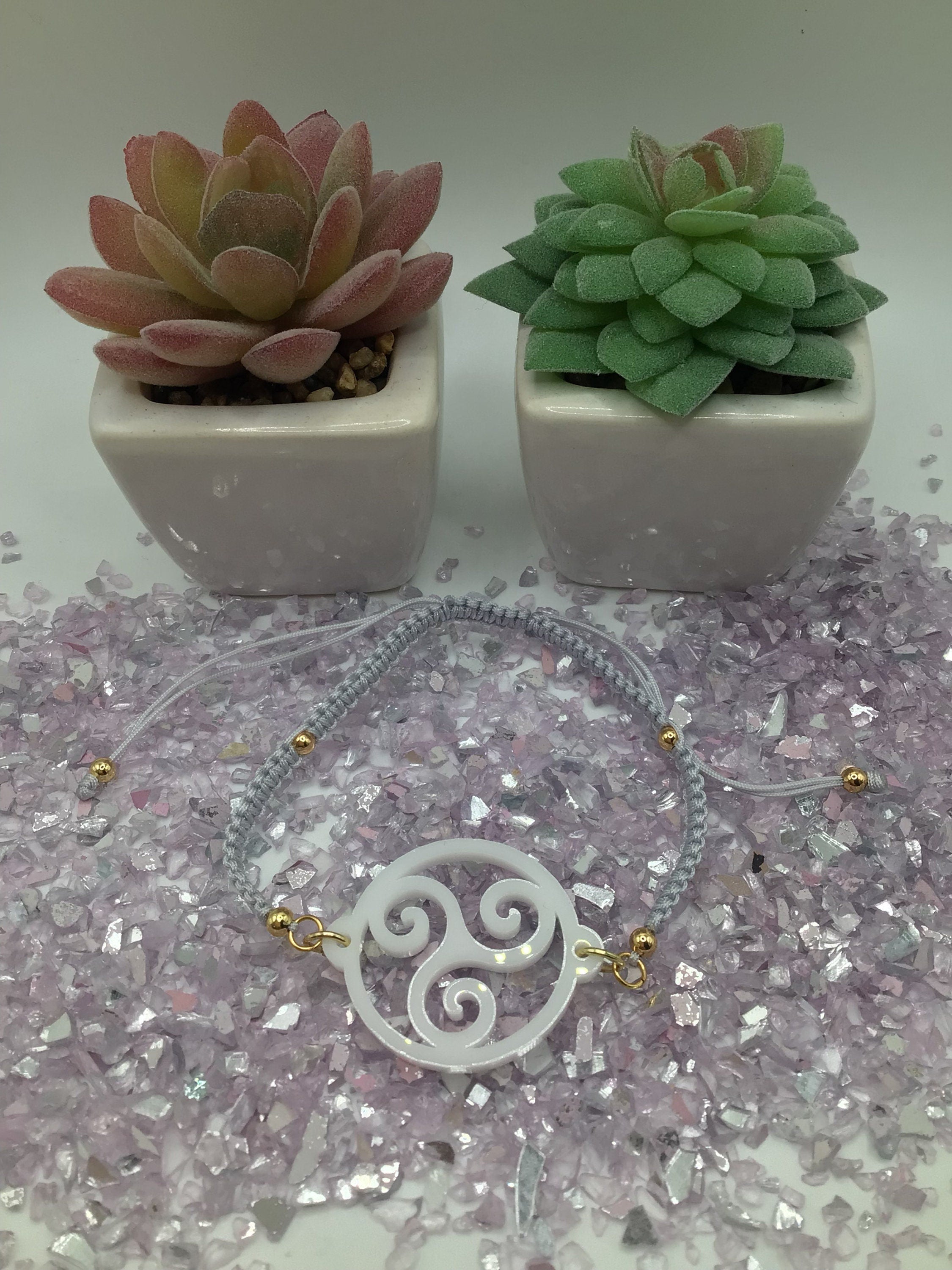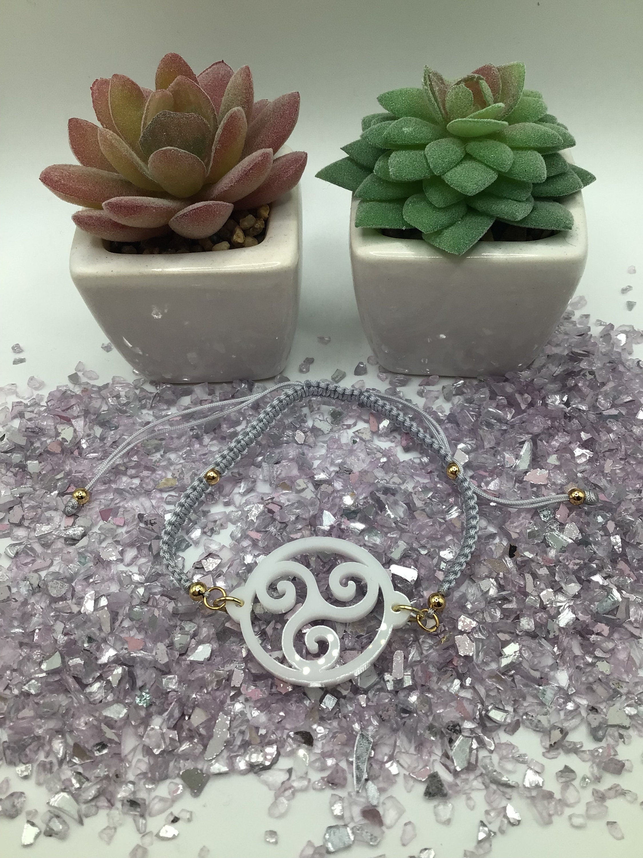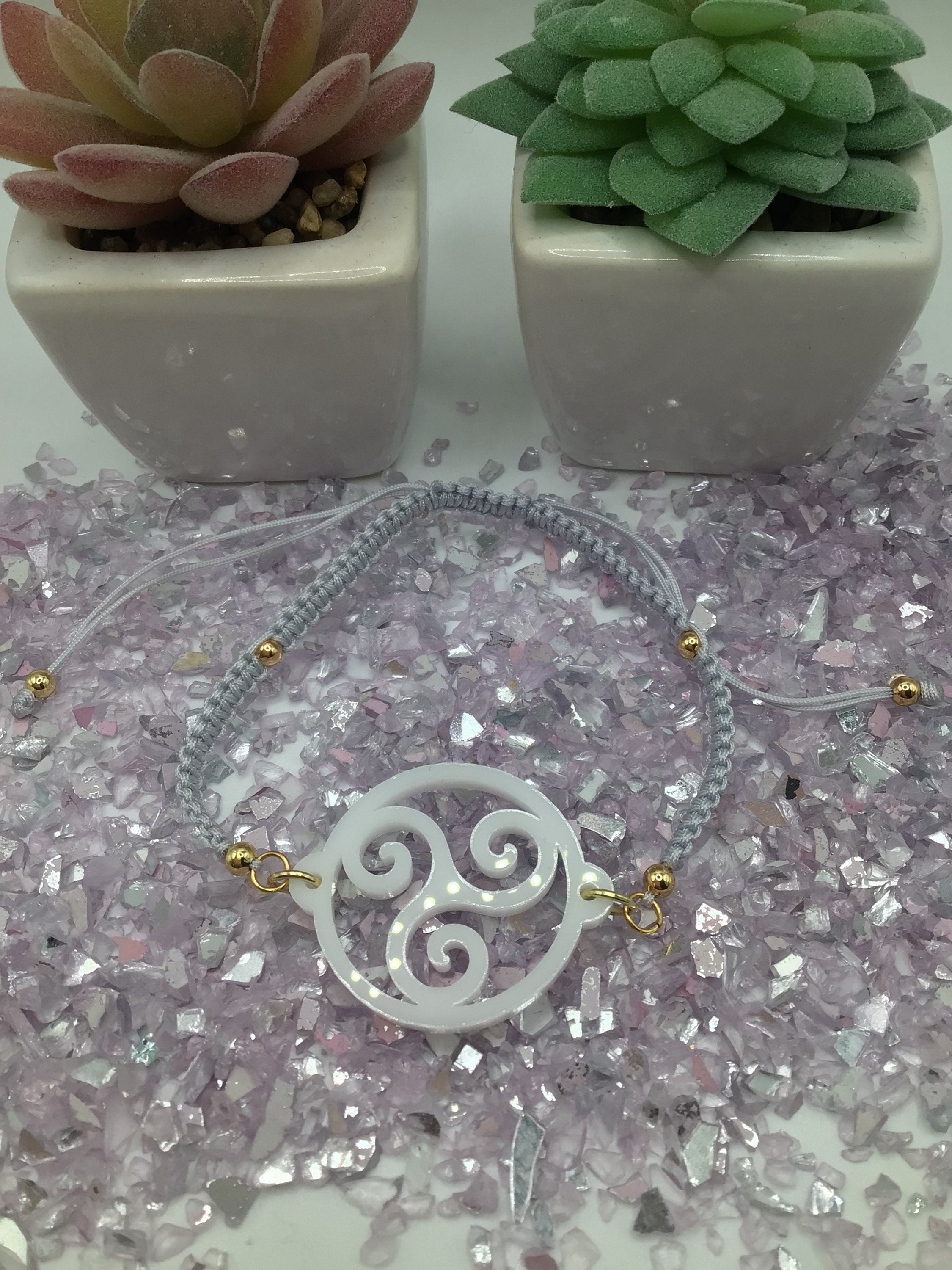 Triskelion White Acrylic on Adjustable Gray Bracelet