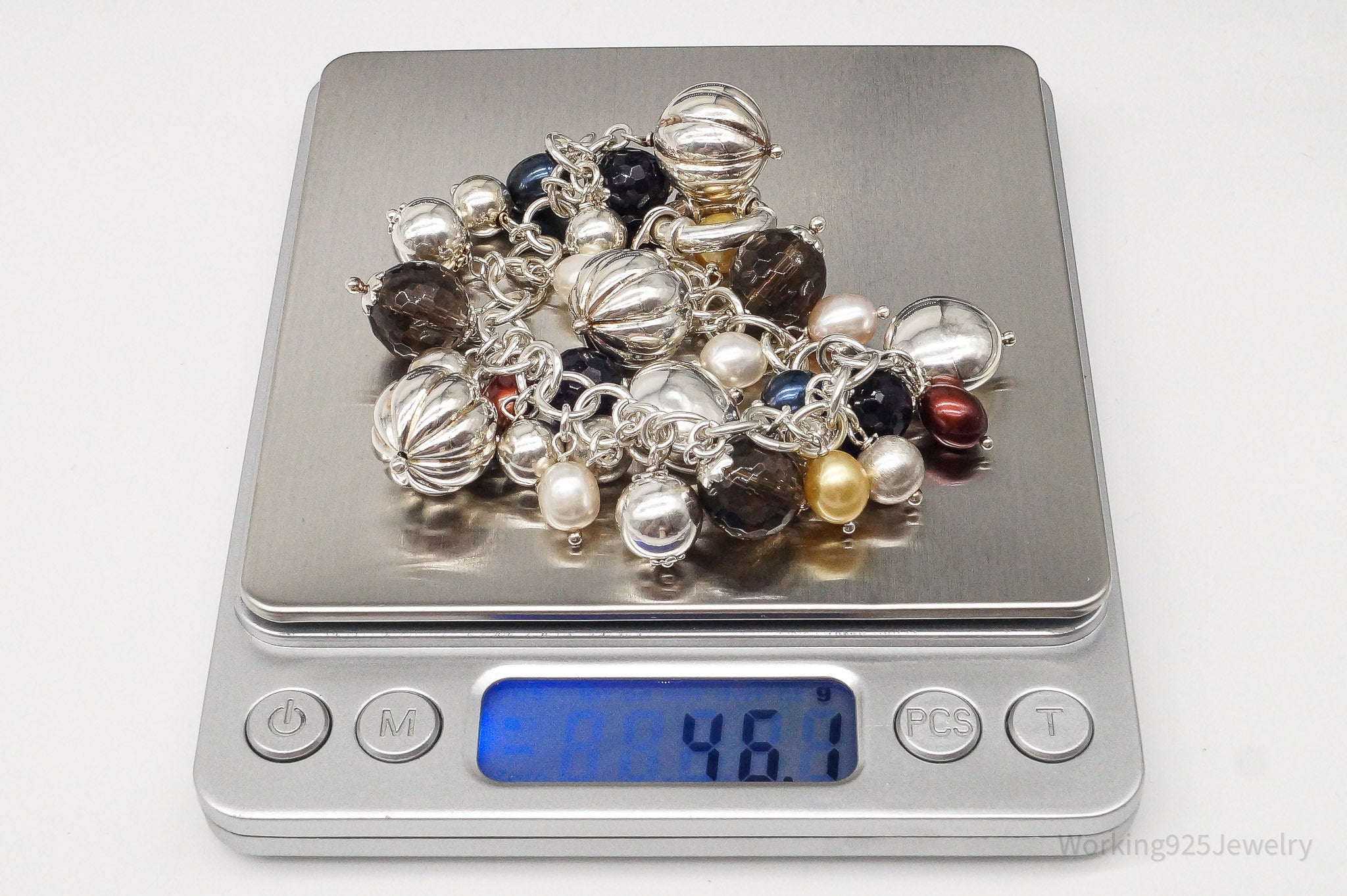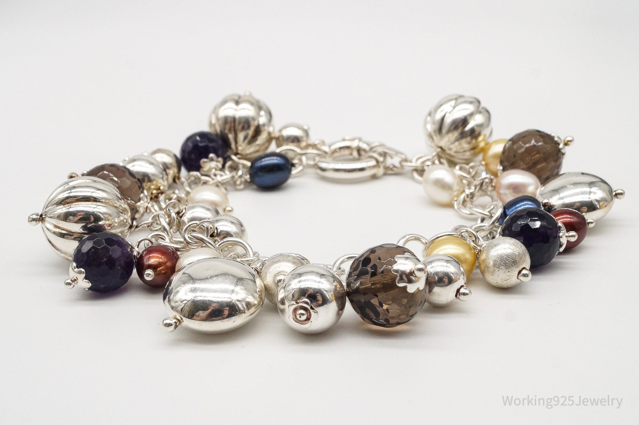 Vintage Italian Pearl Smoky Topaz Amethyst Sterling Silver Charm Bracelet