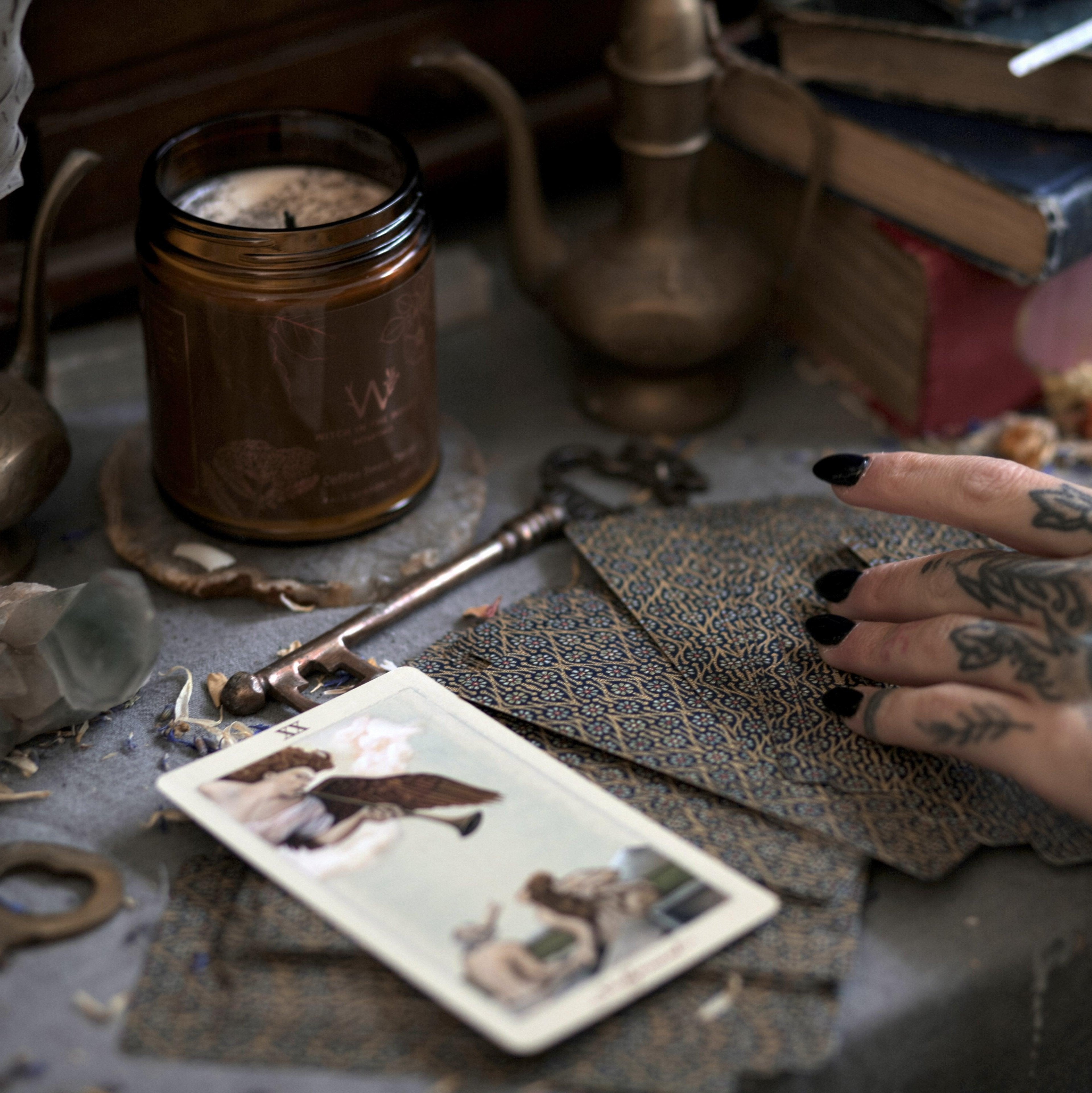 Each Witch in the Woods candle is a vessel for hidden messages. When the wax has melted and the flame subsides, the herbs drift into patterns like constellations across the night sky. Just as tea leaves can be read, so too can the herbs within these candles. Pause and look closely. What do you see?