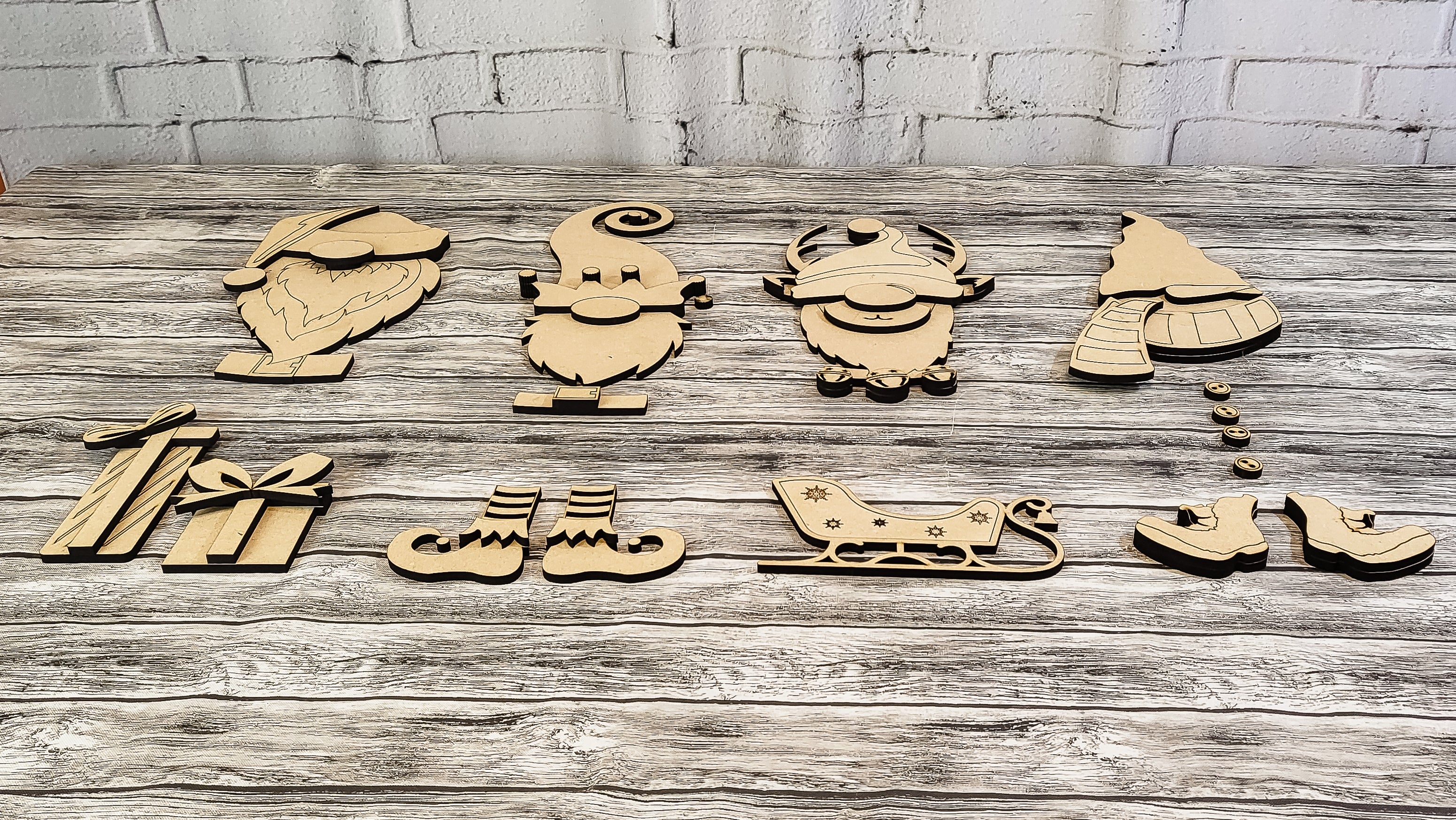 3D Merry Christmas Winter Gnome Porch Leaner DIY Unfinished Kit ‐ All 4 Gnomes with Accents / Paint Kit + $15