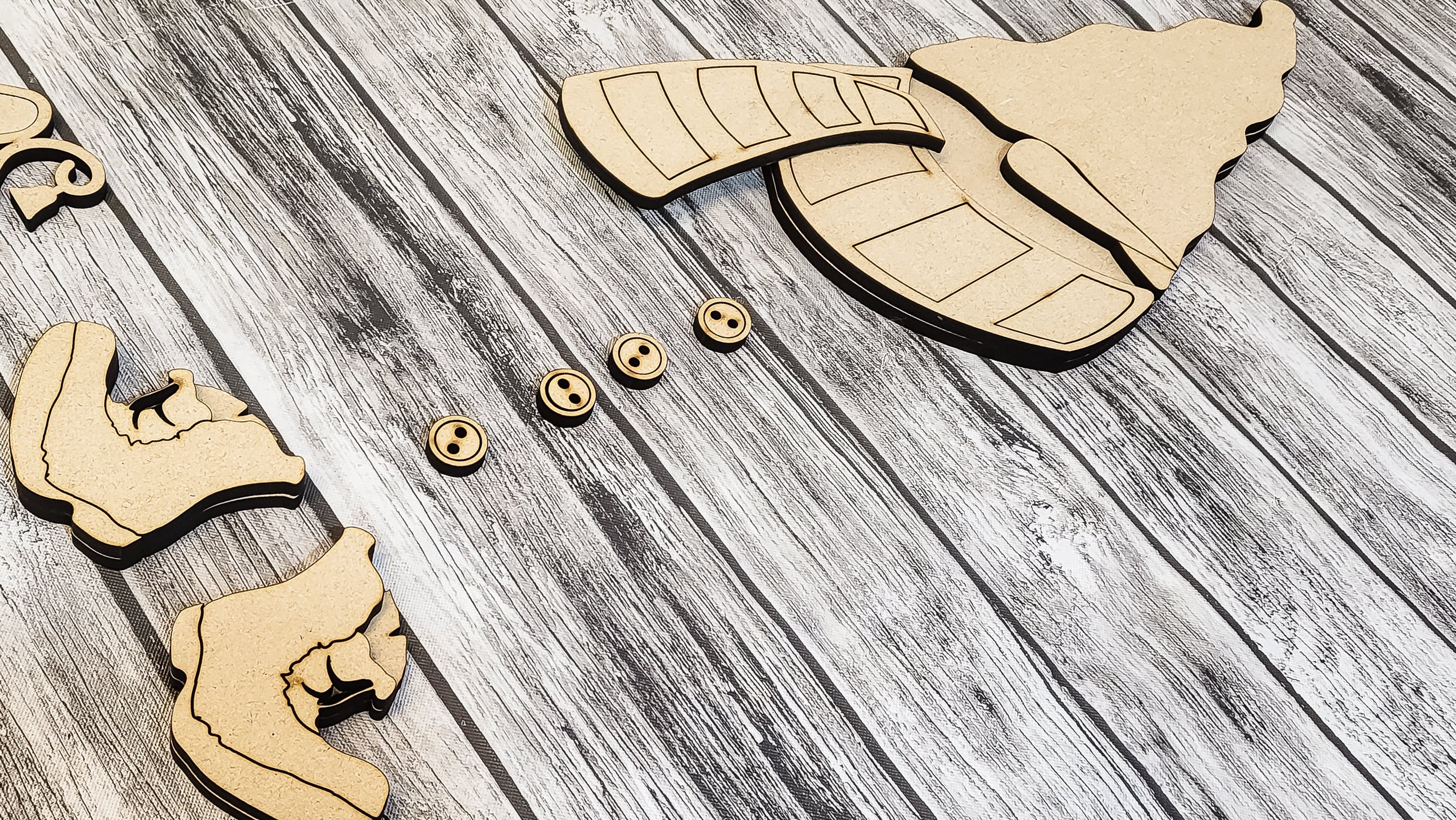 Our unfinished wood cut-outs are crafted of a high-quality grade MDF. All products are cut in-house. We recommend using polyacrylic to seal your finished projects. All products cut on 1/4" MDF.