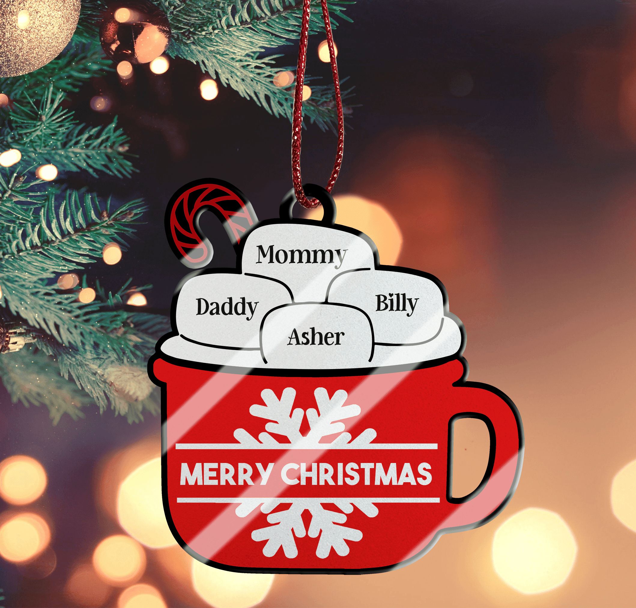 Christmas Family Hot Chocolate Ornament - Custom Ornament Acrylic - Christmas Gift for Family, Couples, Friends, Babies, Mothers and Grandma
