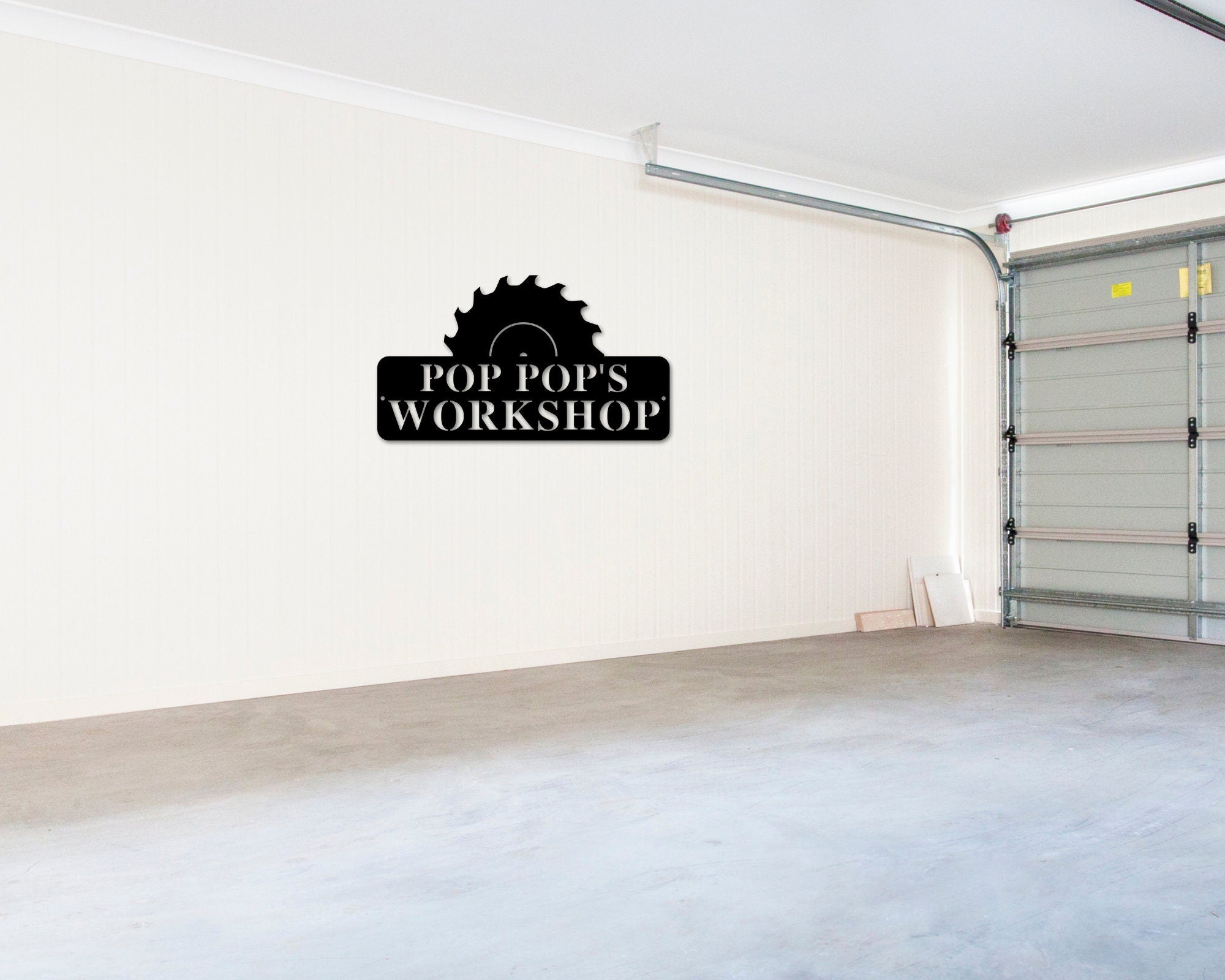 Christmas Gift, Holiday Sale, Pop Pop's Workshop Sign In A Saw Blade, Crescent Wrench & Hammer Art, Gifts For Pop Pop, Woodworker Sign ‐ Silver / 6inch