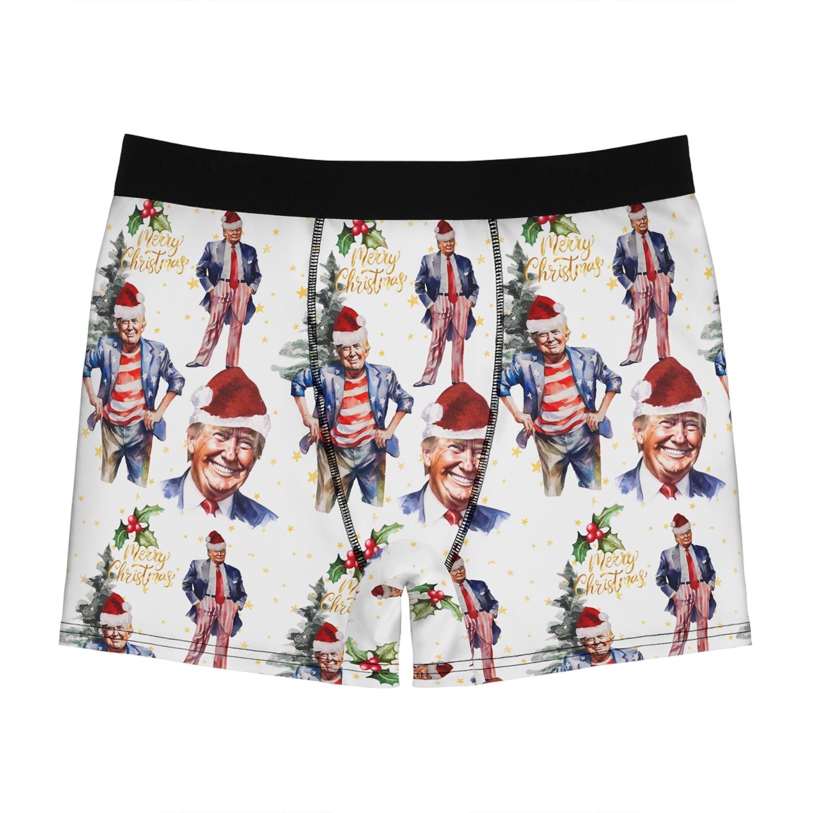 Christmas Watercolor Trump Santa Boxer Briefs, Political Xmas Gift, Trump Christmas Gift, Republican Gift