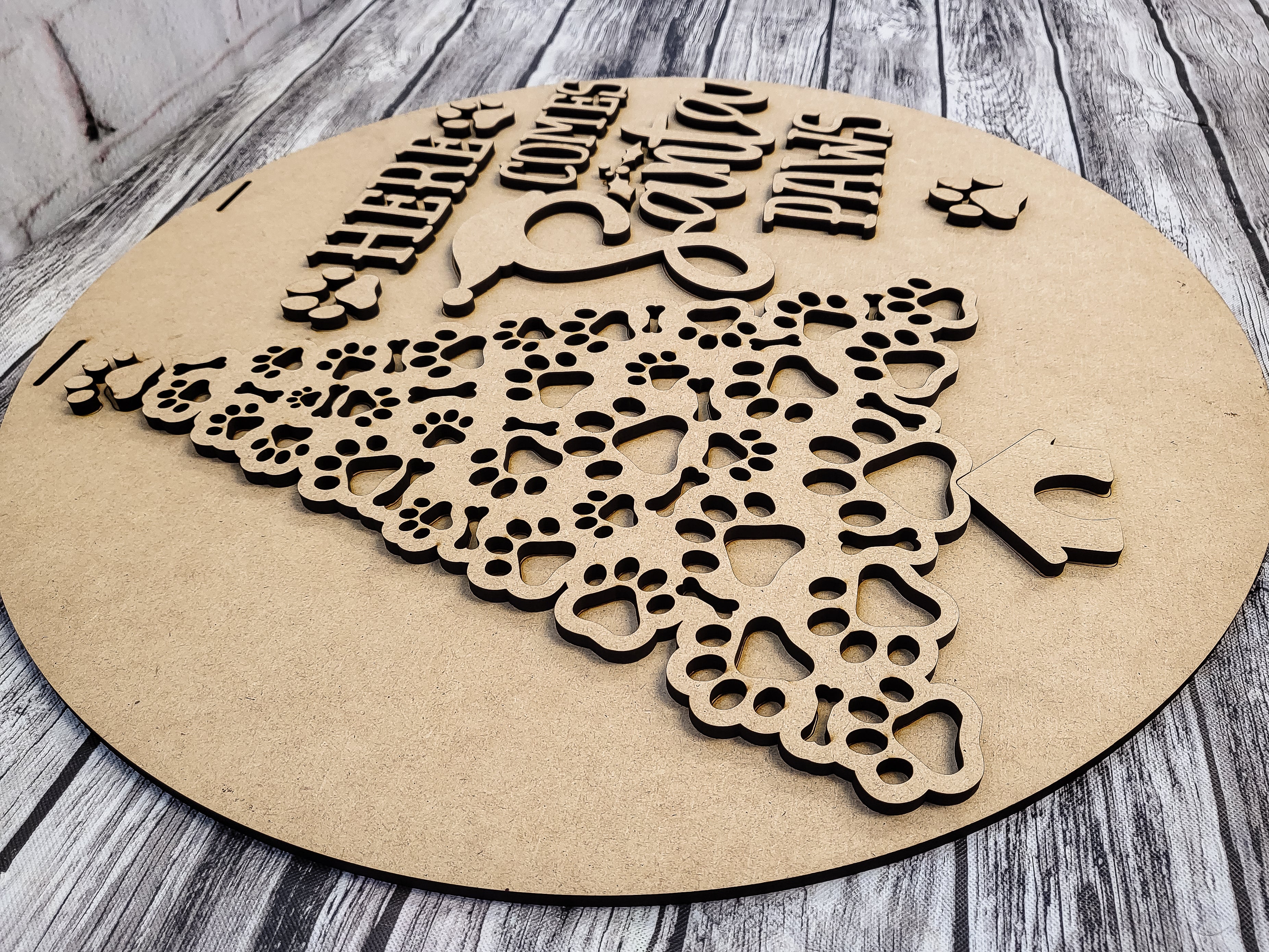 Here Comes Santa Paws Christmas Door Hanger DIY Unfinished Kit