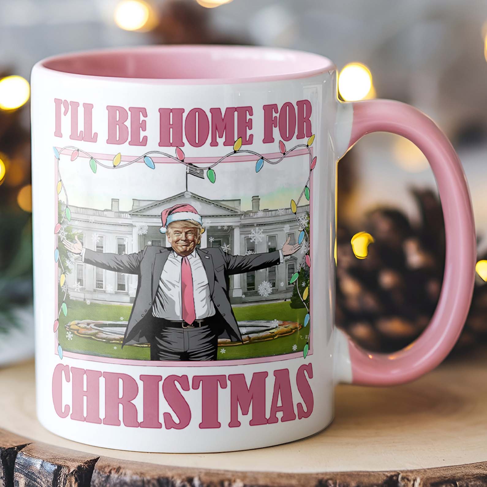 I'll Be Home For Christmas, Funny Trump Christmas Mug, Trump 47th President White Mug Accent Mug T1732 - GOP ‐ Accent Mug / 15oz (Accent Mug) / Light Pink