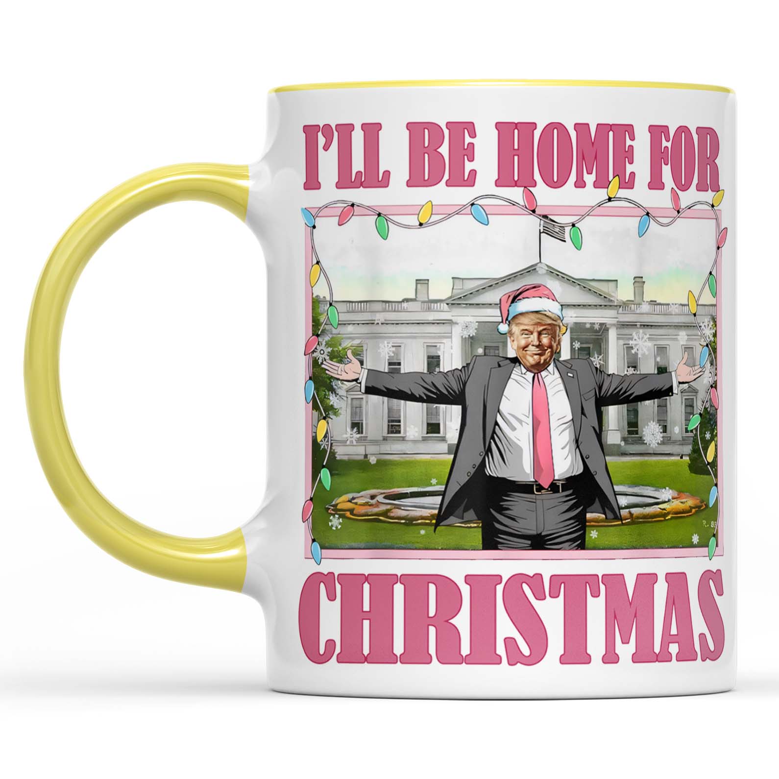 I'll Be Home For Christmas, Funny Trump Christmas Mug, Trump 47th President White Mug Accent Mug T1732 - GOP ‐ Accent Mug / 11oz (Accent Mug) / Yellow