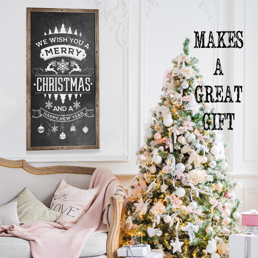 Merry Christmas Happy New Year - Canvas ‐ 30" x 60" Black Framed
