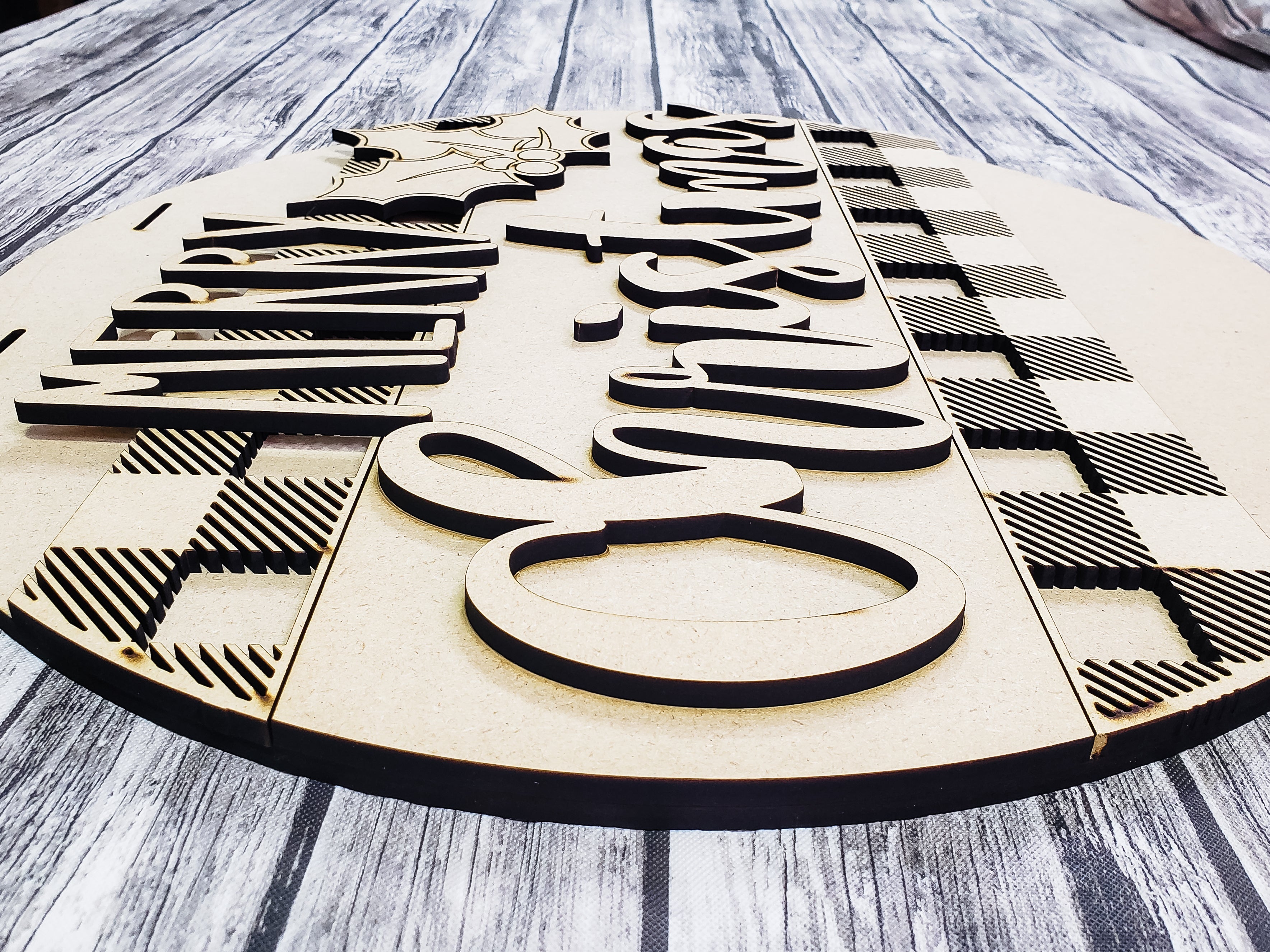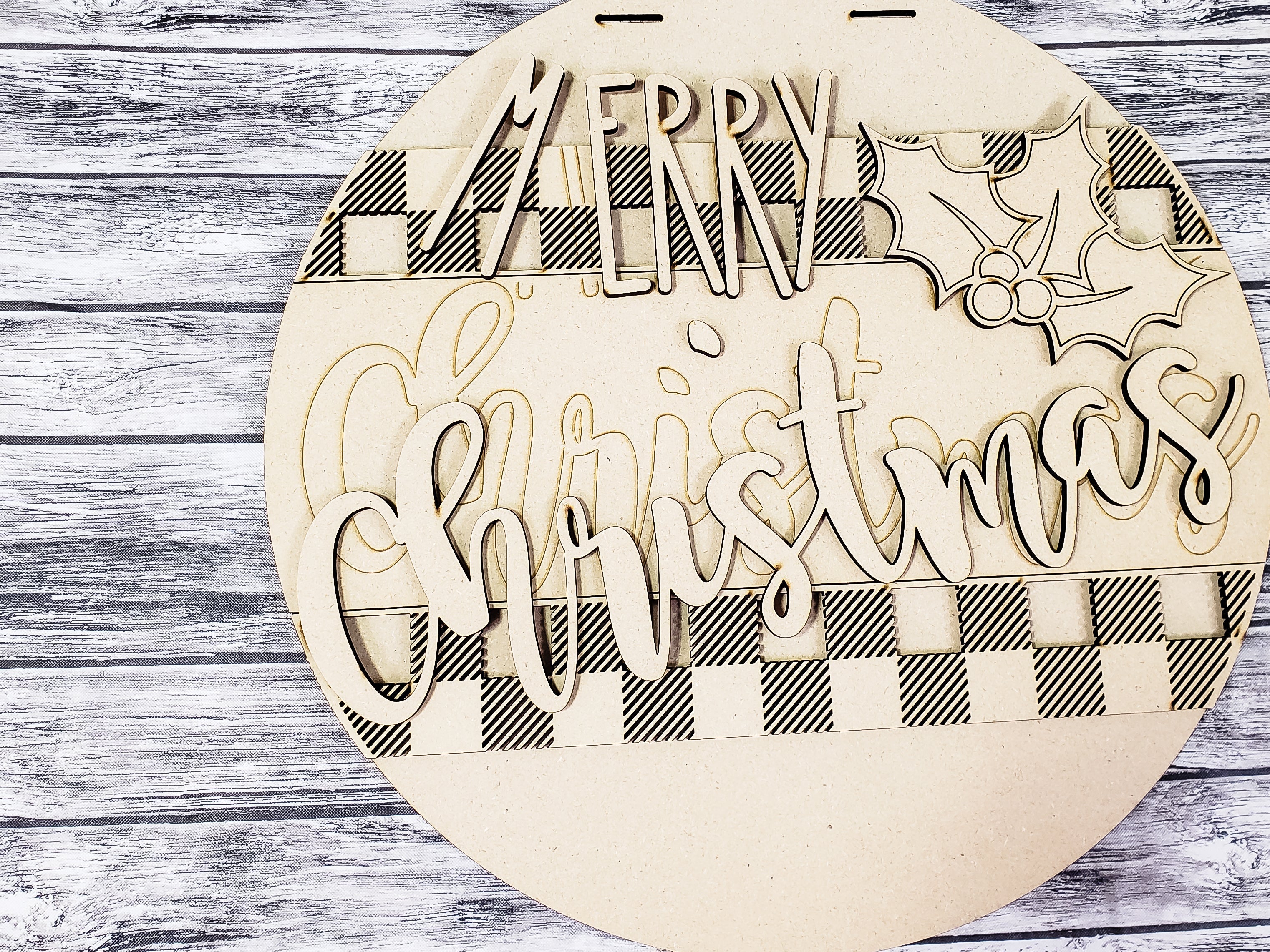 MERRY Christmas Holly Buffalo Plaid Door Hanger Unfinished Kit