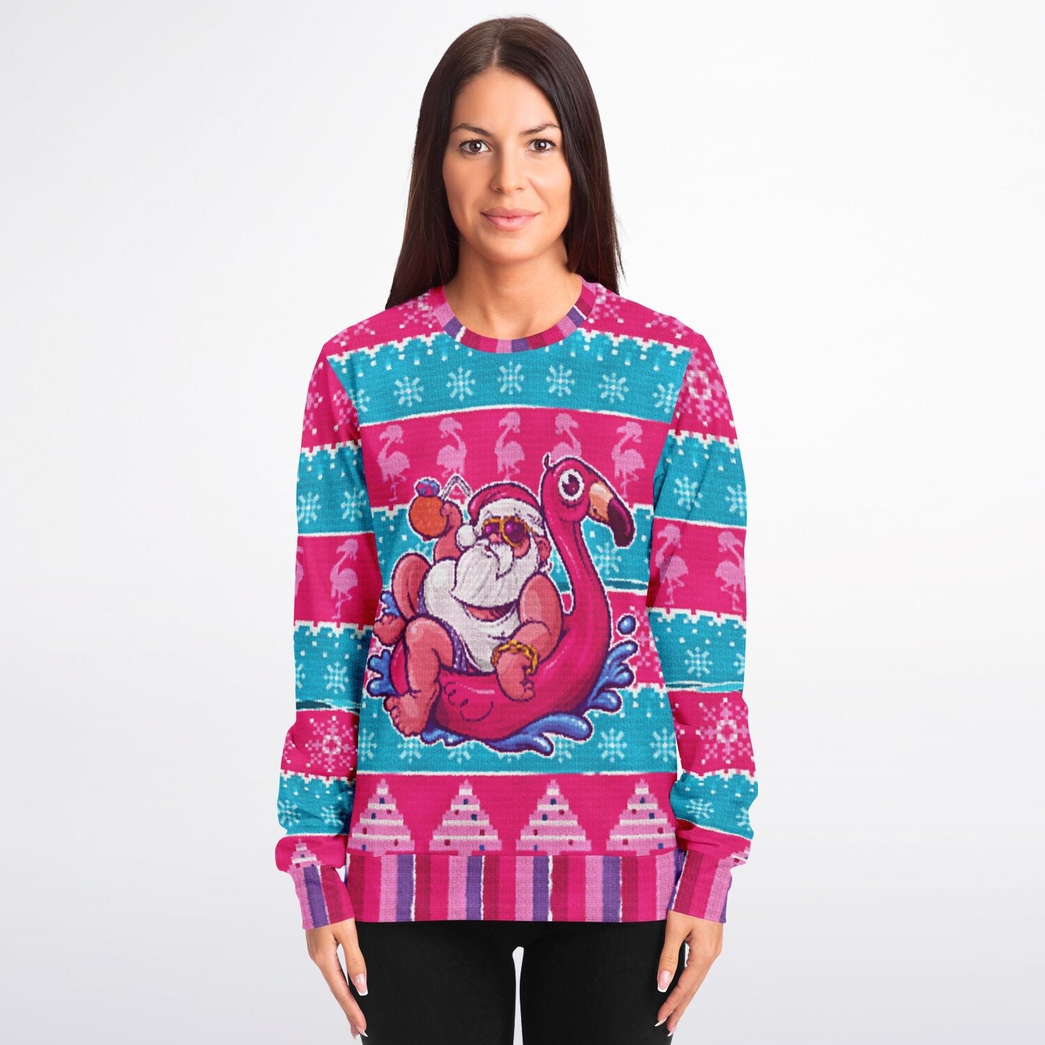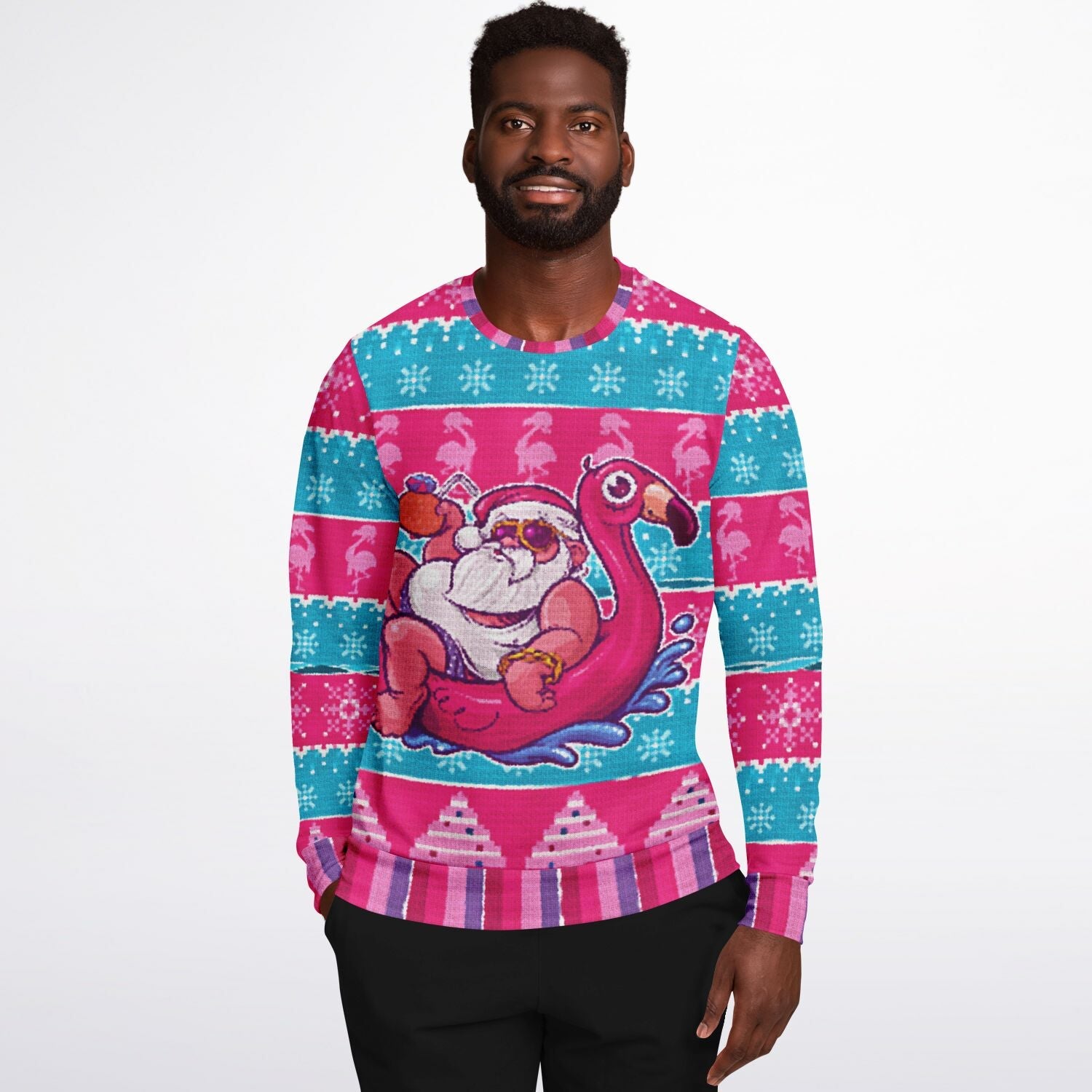Relaxin' Santa Flamingo Ugly Christmas Sweatshirt ‐ XS