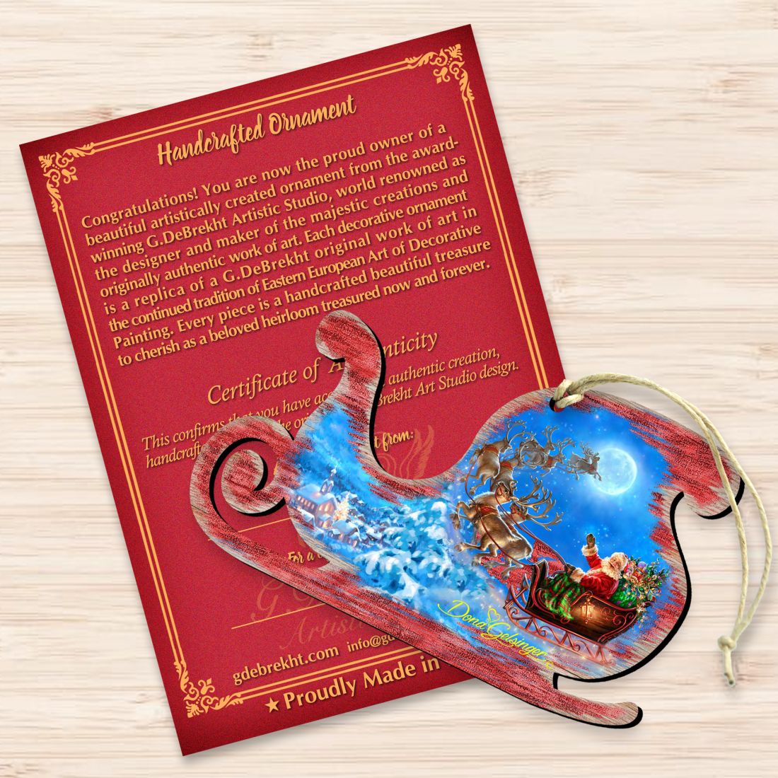 Santa Magical Flight Wooden Ornaments by Gelsinger - Christmas Santa Snowman Decor - 8161020-1314 ‐ SINGLE piece