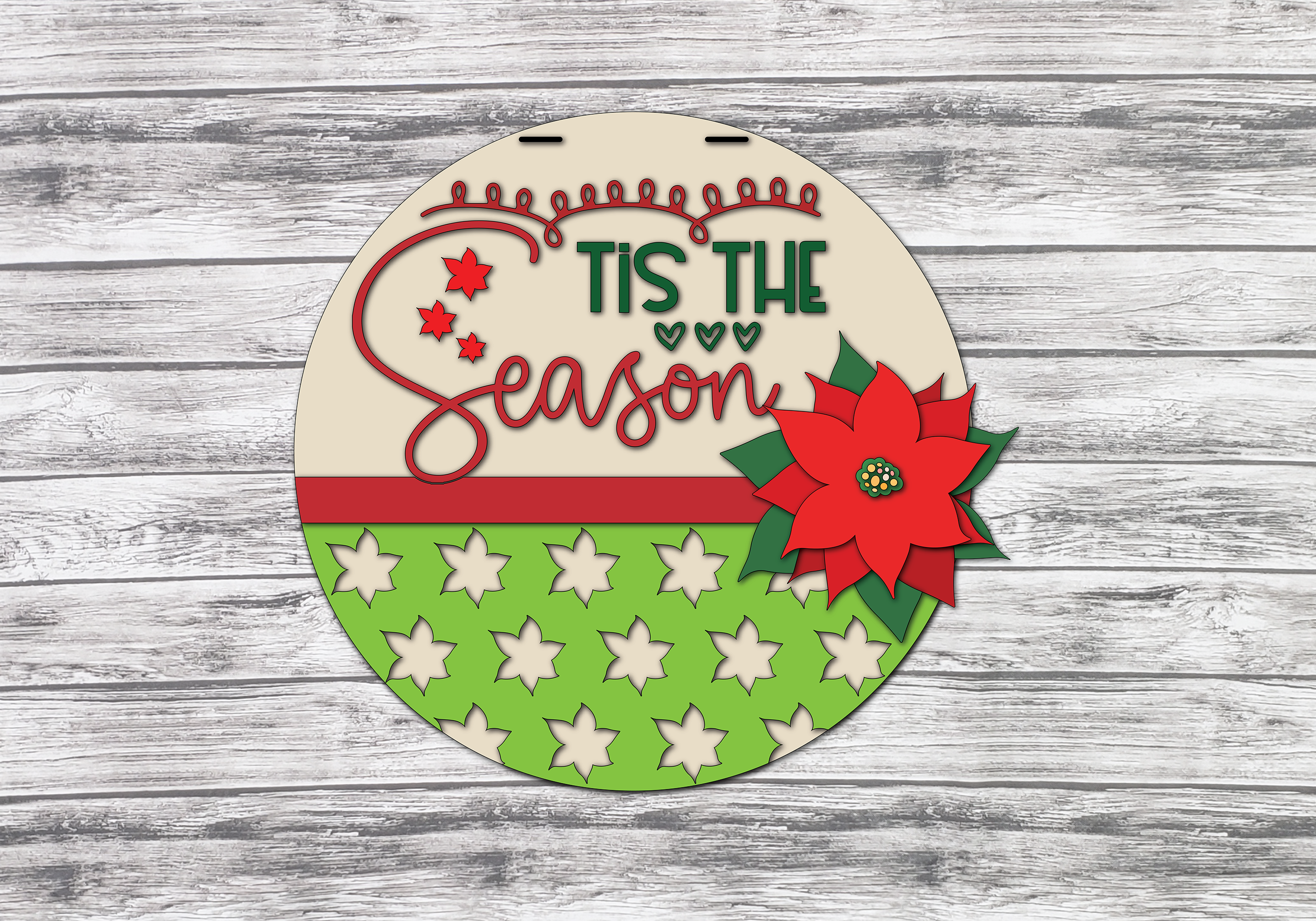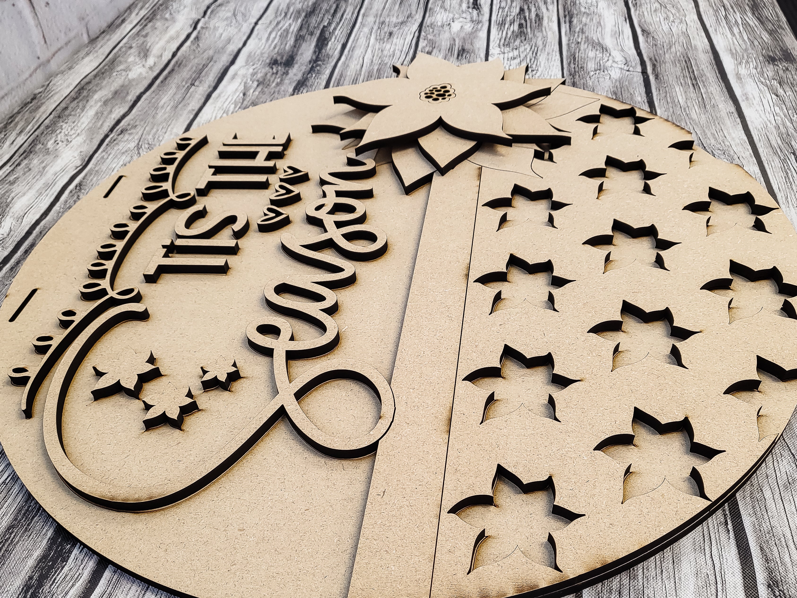 Tis The Season Poinsettia Christmas Door Hanger DIY Unfinished Kit