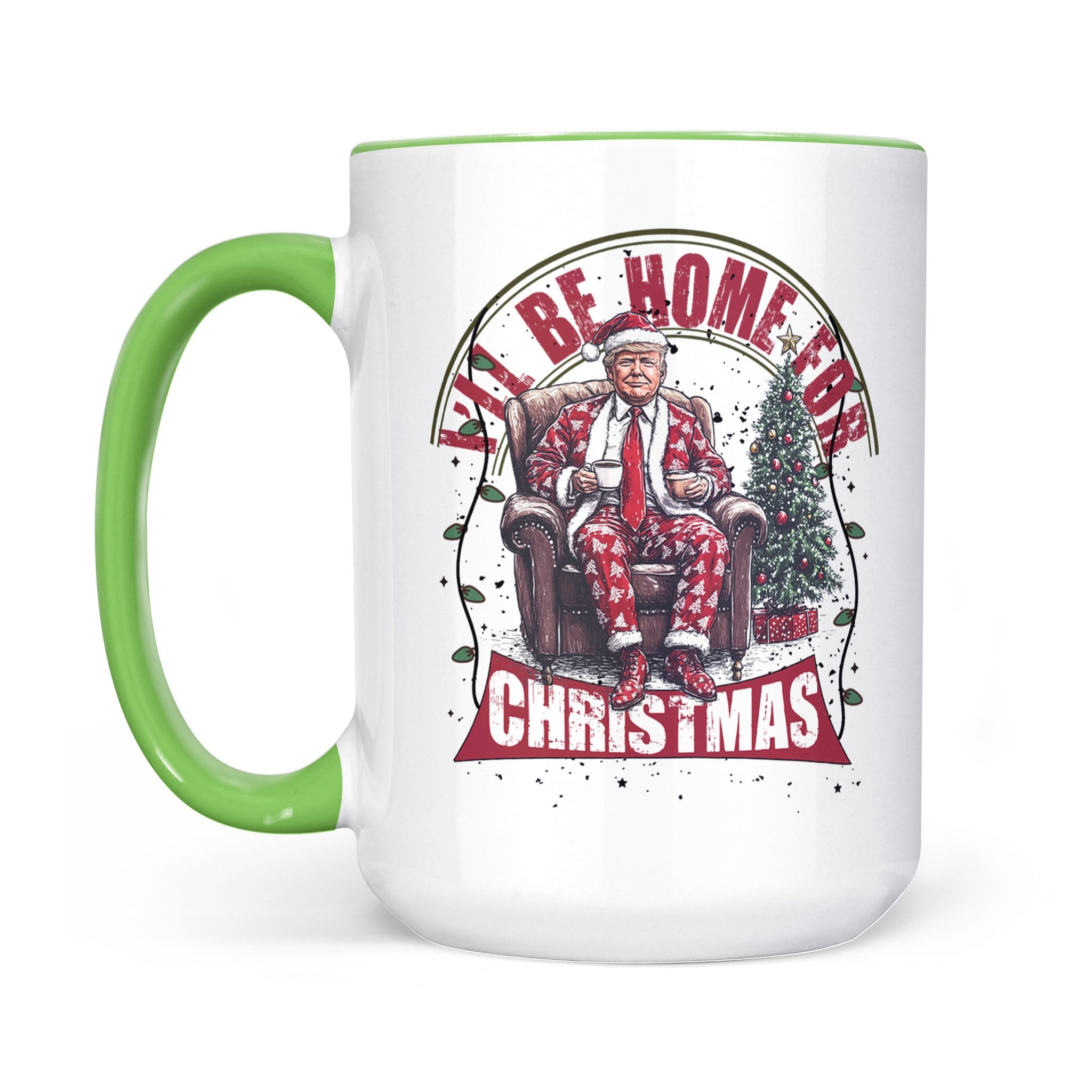 Trump I'll Be Home for Christmas Mug, Humorous Trump Christmas Mug, Christmas Republican White Mug Accent Mug T1661 - GOP ‐ Accent Mug / 15oz (Accent Mug) / Light Green