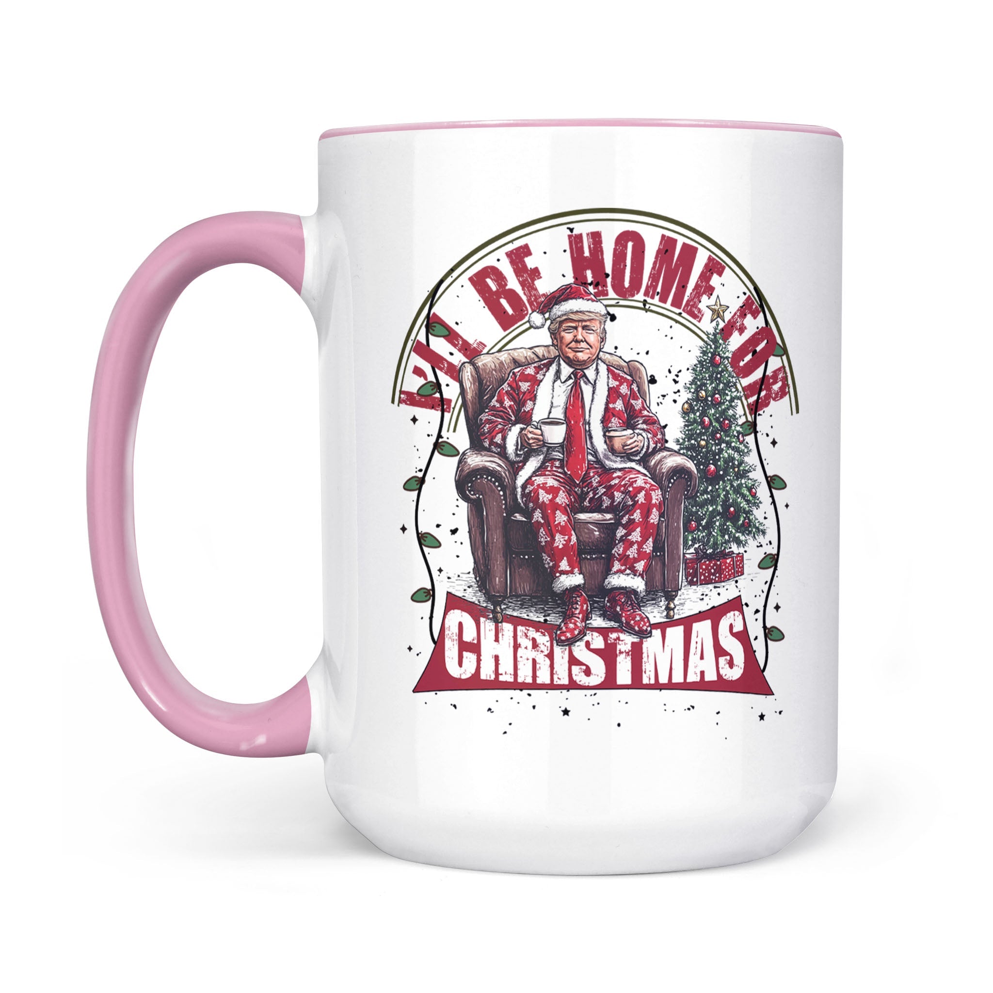 Trump I'll Be Home for Christmas Mug, Humorous Trump Christmas Mug, Christmas Republican White Mug Accent Mug T1661 - GOP ‐ Accent Mug / 15oz (Accent Mug) / Light Pink