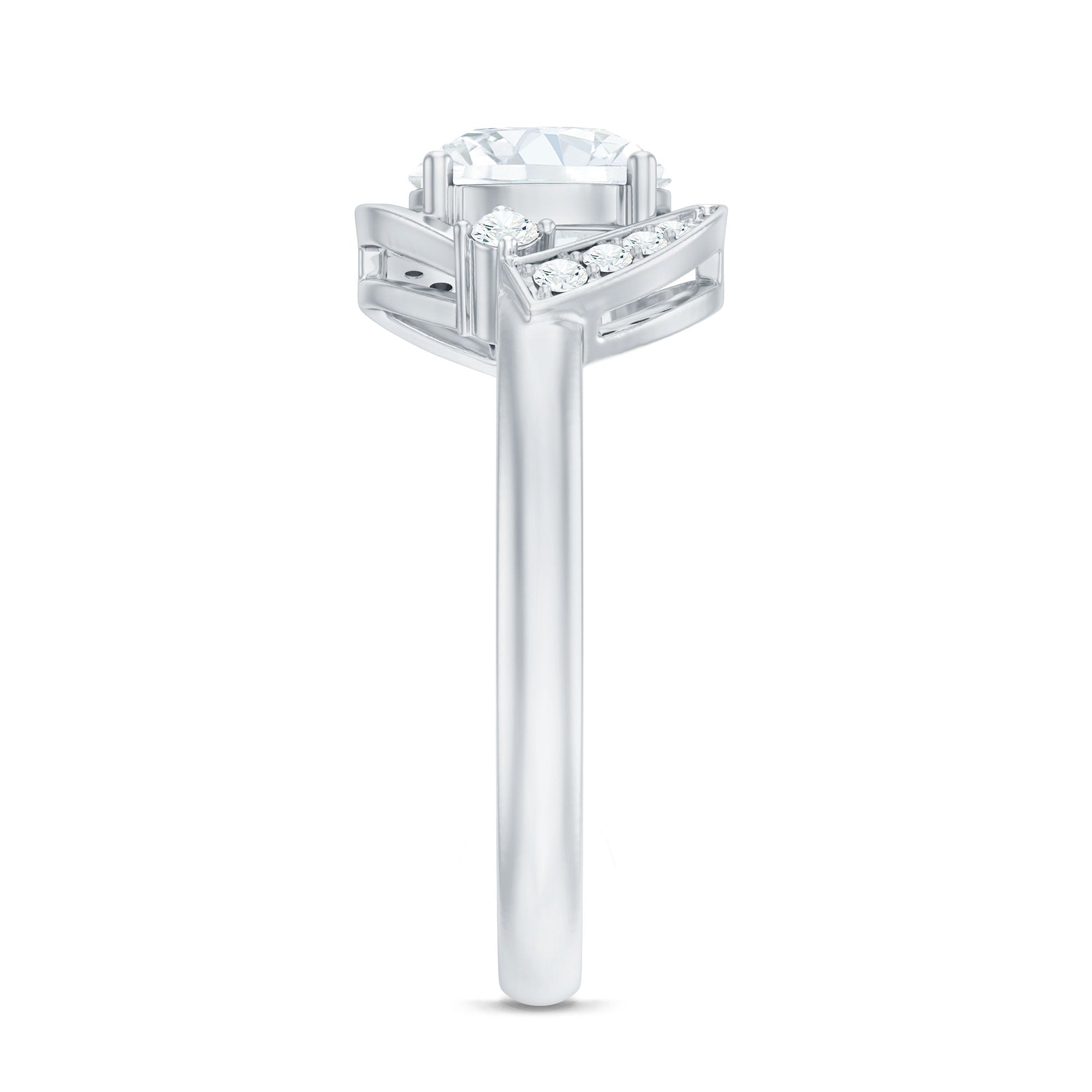Proclaim your love in sophisticated style with this gorgeous Lab Grown Diamond Engagement Ring. This breathtaking Bypass Engagement Ring features a 2 carat Diamond of round shape set in prong setting with a bypass shank that symbolizes two souls intertwining as one. The curved design is adorned with a series of sparkling accent diamonds, meticulously set along the shank to enhance its brilliance. All the diamonds in this Classic Ring are lab-grown, and produced in an ethical and eco-friendly way. Utterly enchanting this Round Cut Diamond Ring has a graceful radiance with an undeniable charm which is perfect to celebrate your one-of-a-kind love.