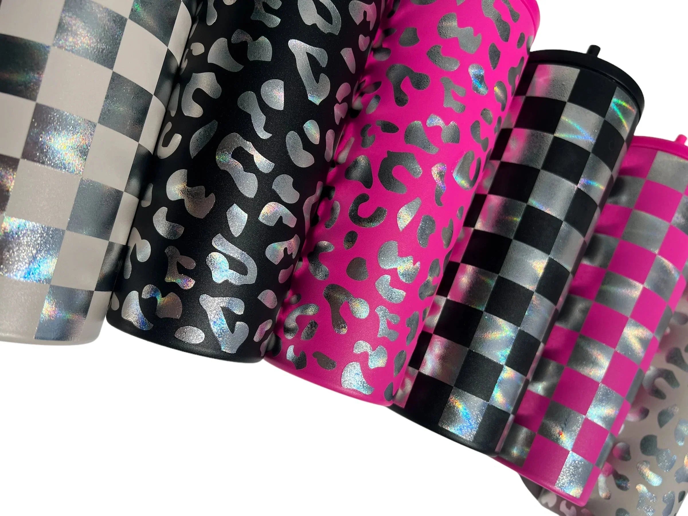 24oz Holographic Leopard Tumbler ‐ Pink Leopard