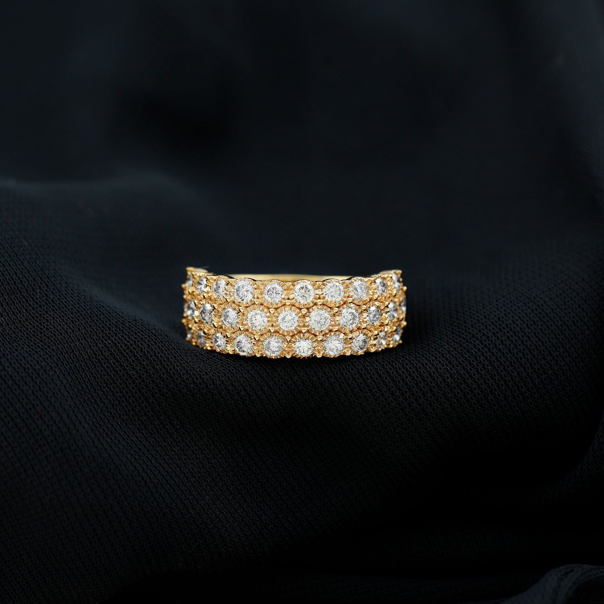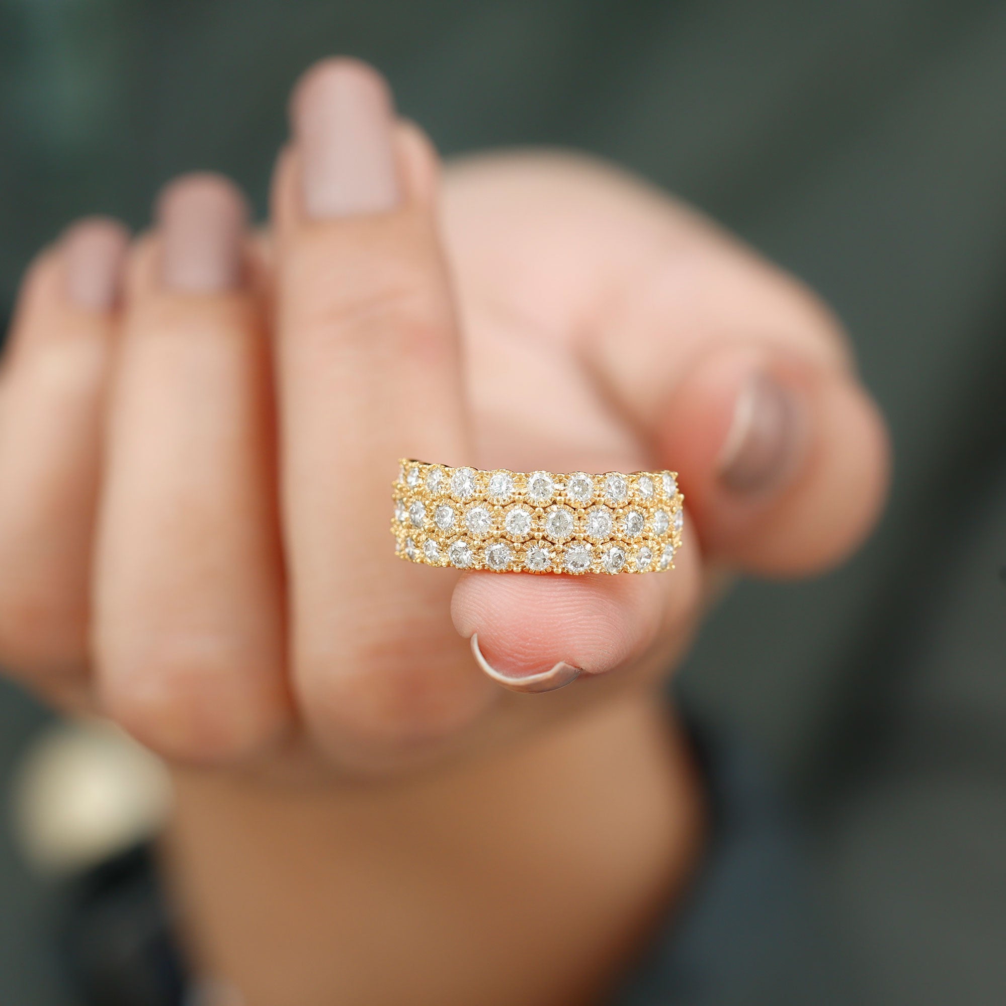 3 Row Lab Grown Diamond Wide Wedding Band with Certificate ‐ Lab - ( EF-VS ) / 18K Yellow Gold