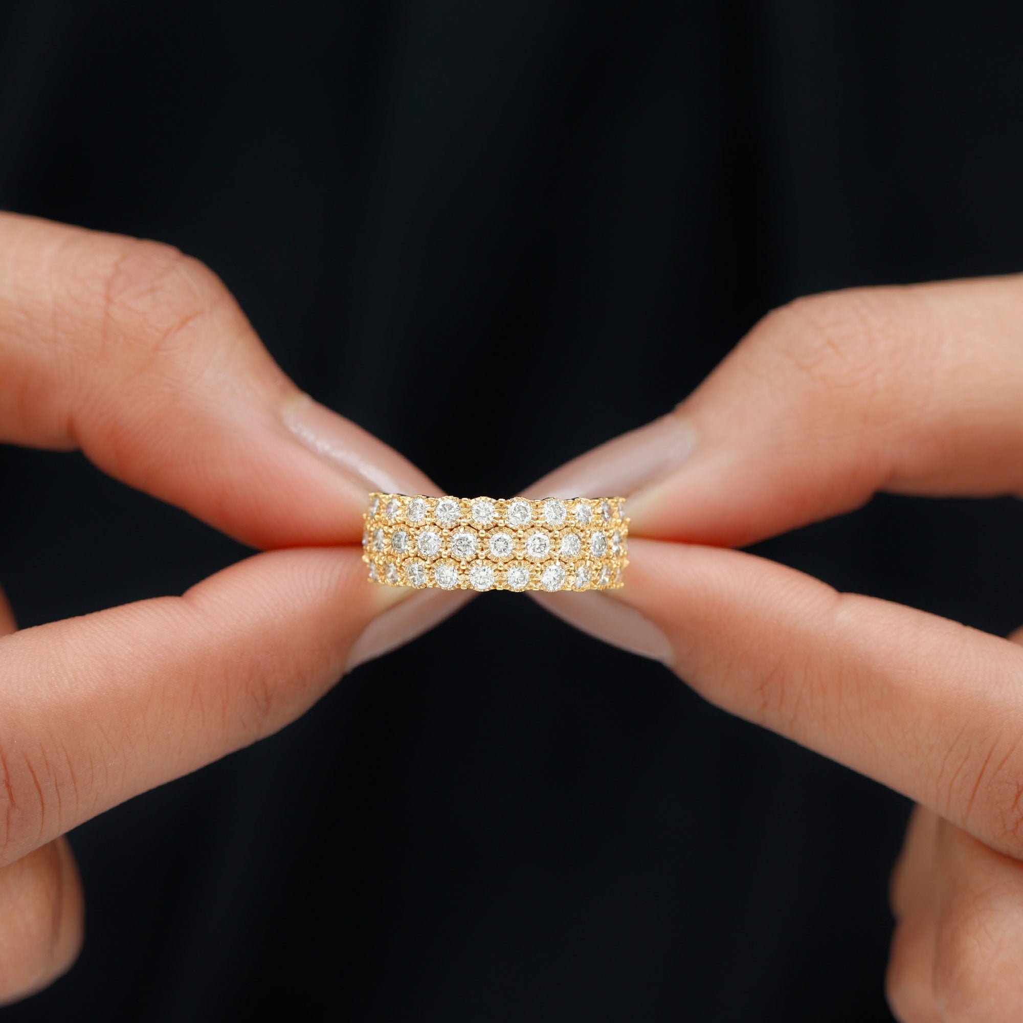 3 Row Lab Grown Diamond Wide Wedding Band with Certificate