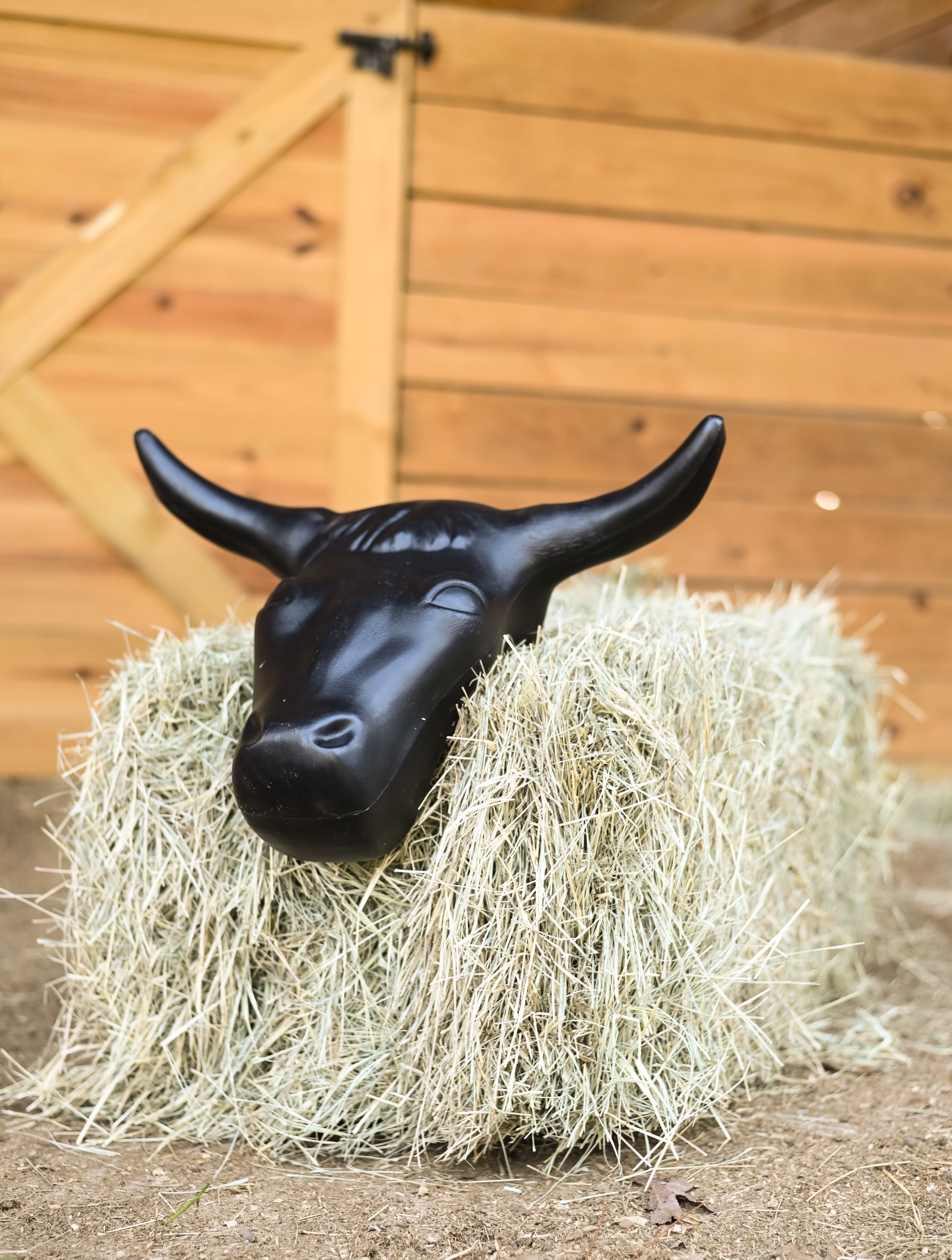 - Steel Rods for Easy Attachment: Includes two 14" steel rods to securely mount the head on a hay bale.