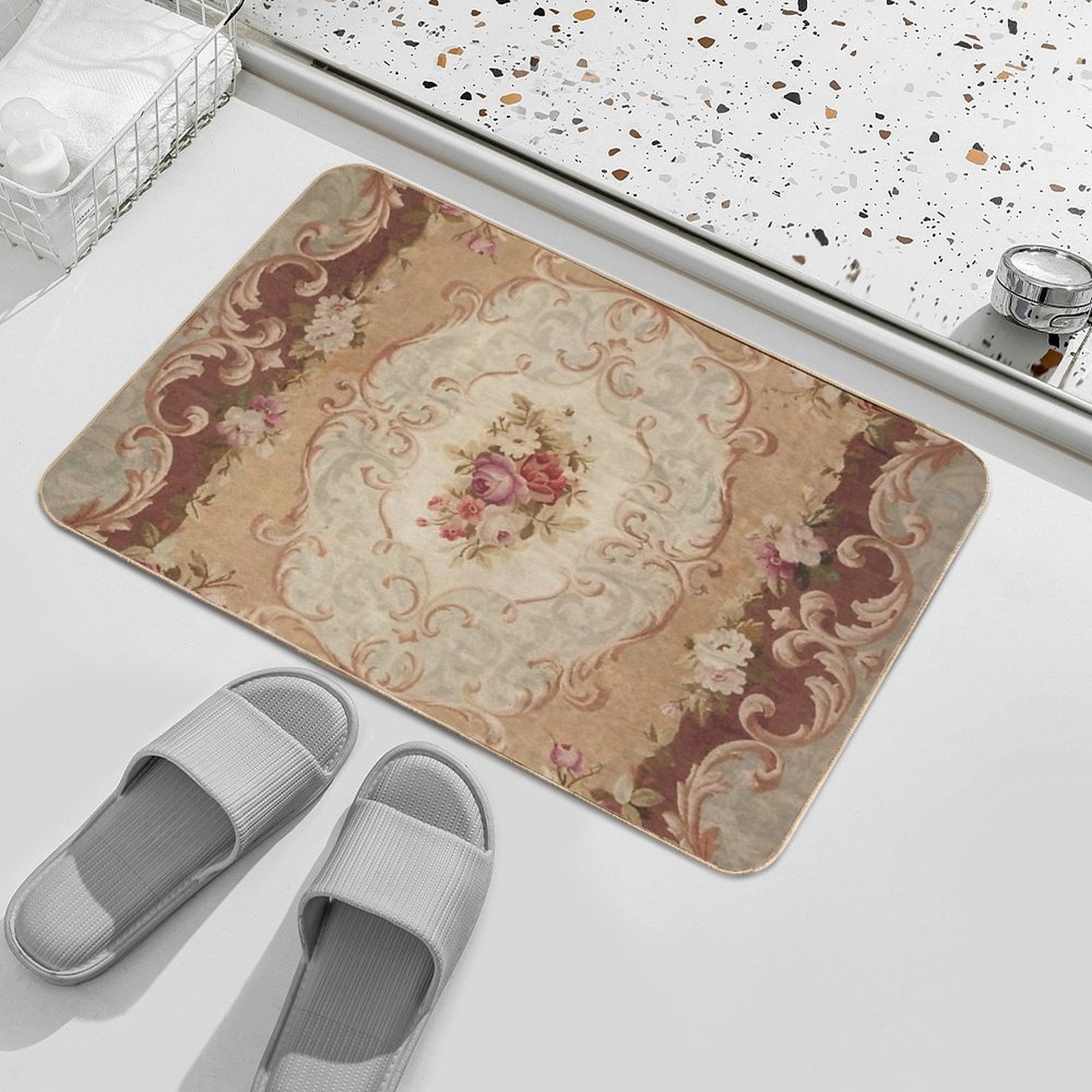 - Use as a vanity rug, guest suite accent, or mudroom defender – the Antique Rose Floral French Aubusson Rug Print Mat adapts to any space.
