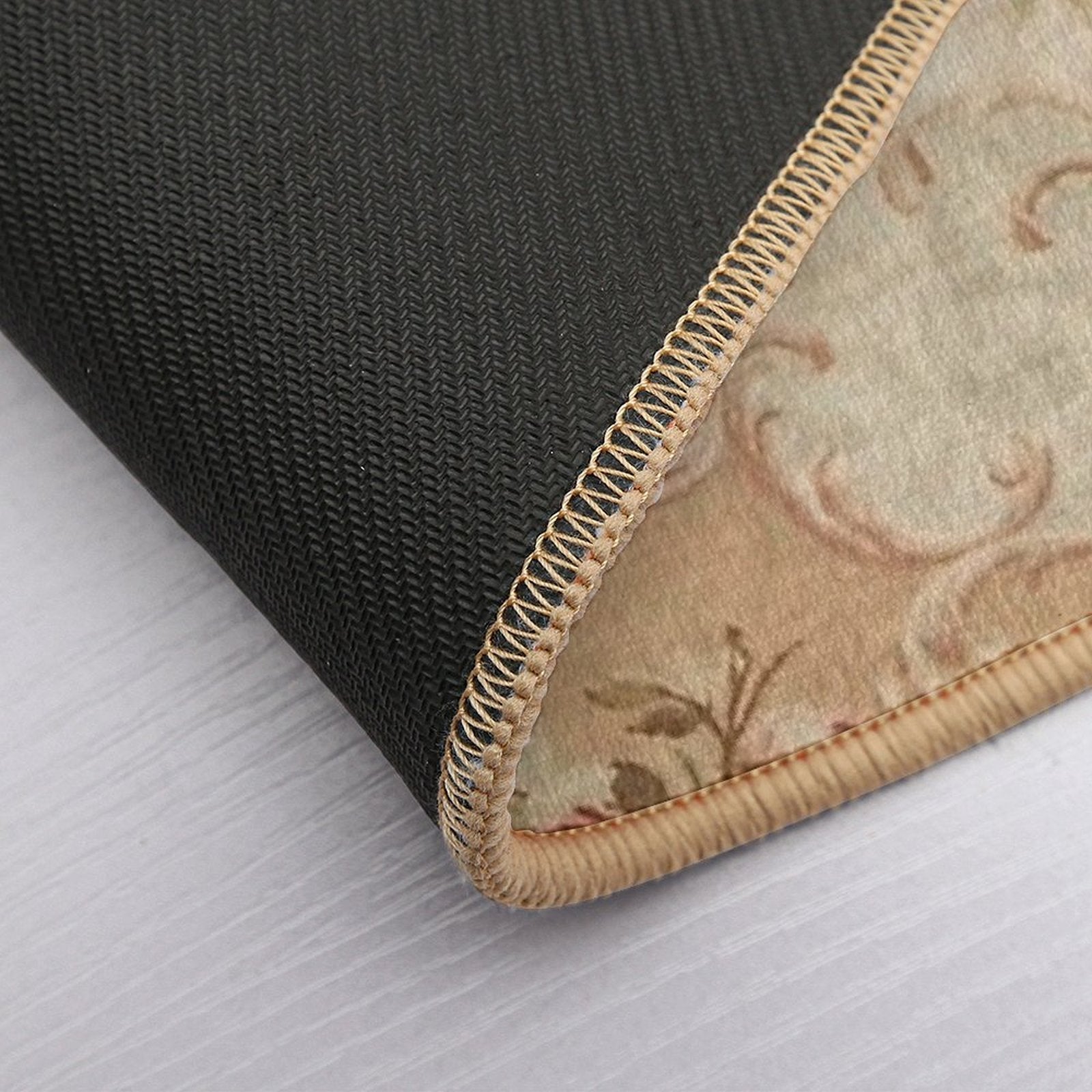 - Non-slip rubber backing grips floors securely, ideal for Antique Rose Floral French Aubusson Rug Print Mat placements on tiles, wood, or marble.