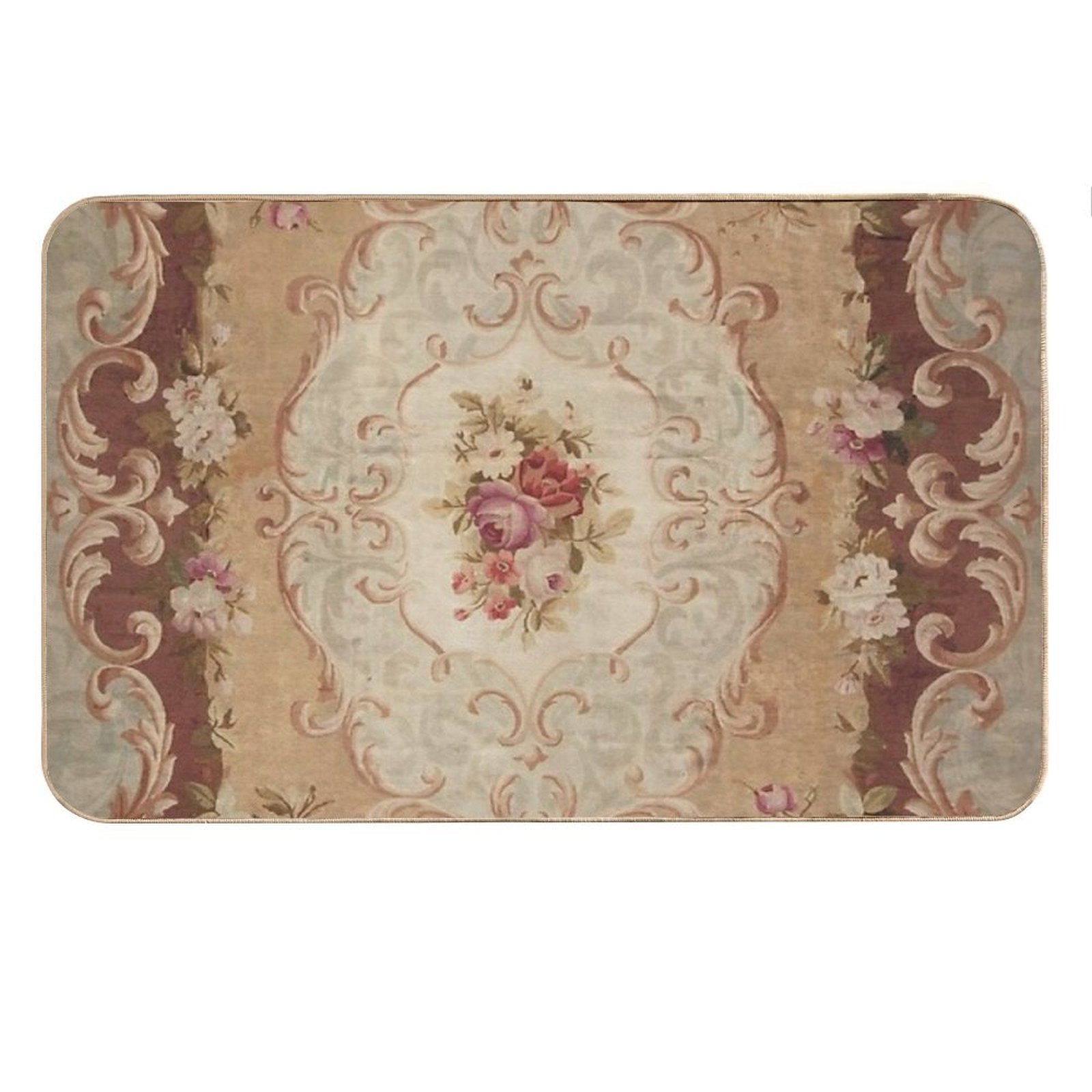 Antique Rose Floral French Aubusson Rug Print Bath Mat