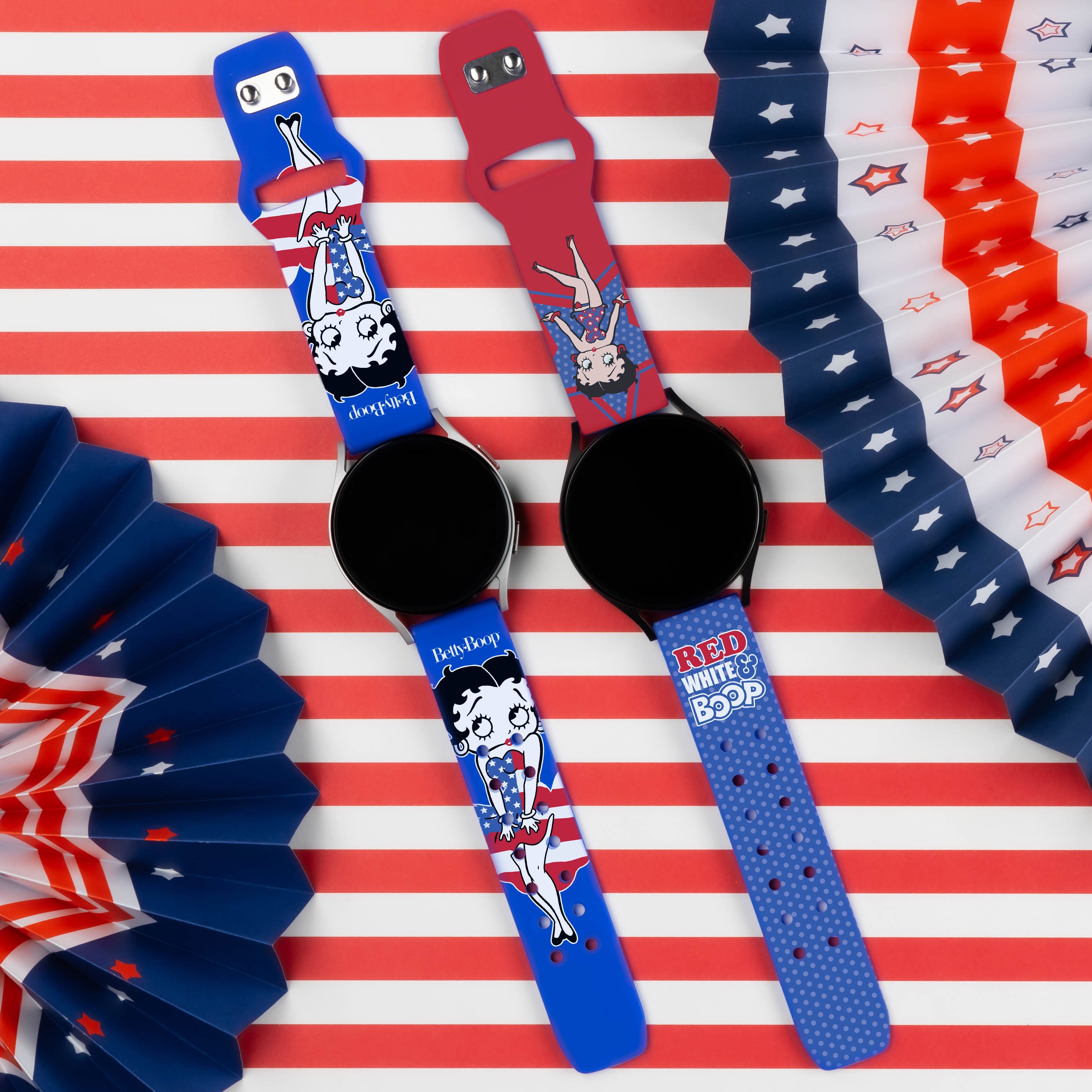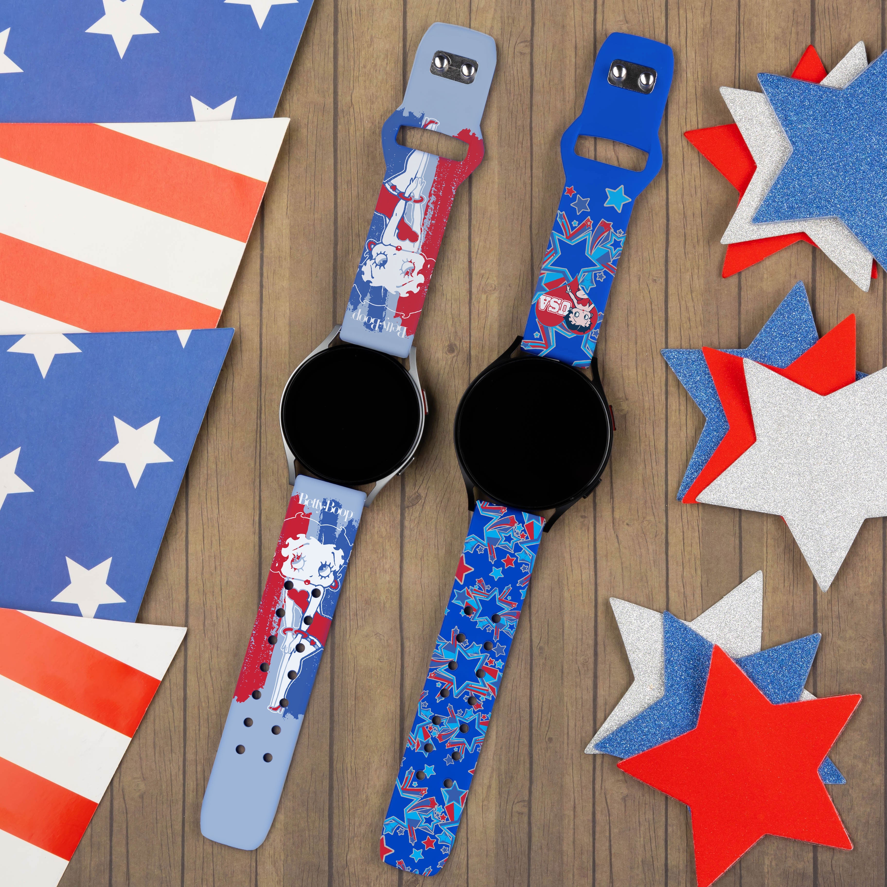 Betty Boop Red White & Boop HD Watchband for Samsung, Garmin, Fossil, and More for Samsung, Garmin, Fossil, and More ‐ Patriotic Paint / 20mm / Long