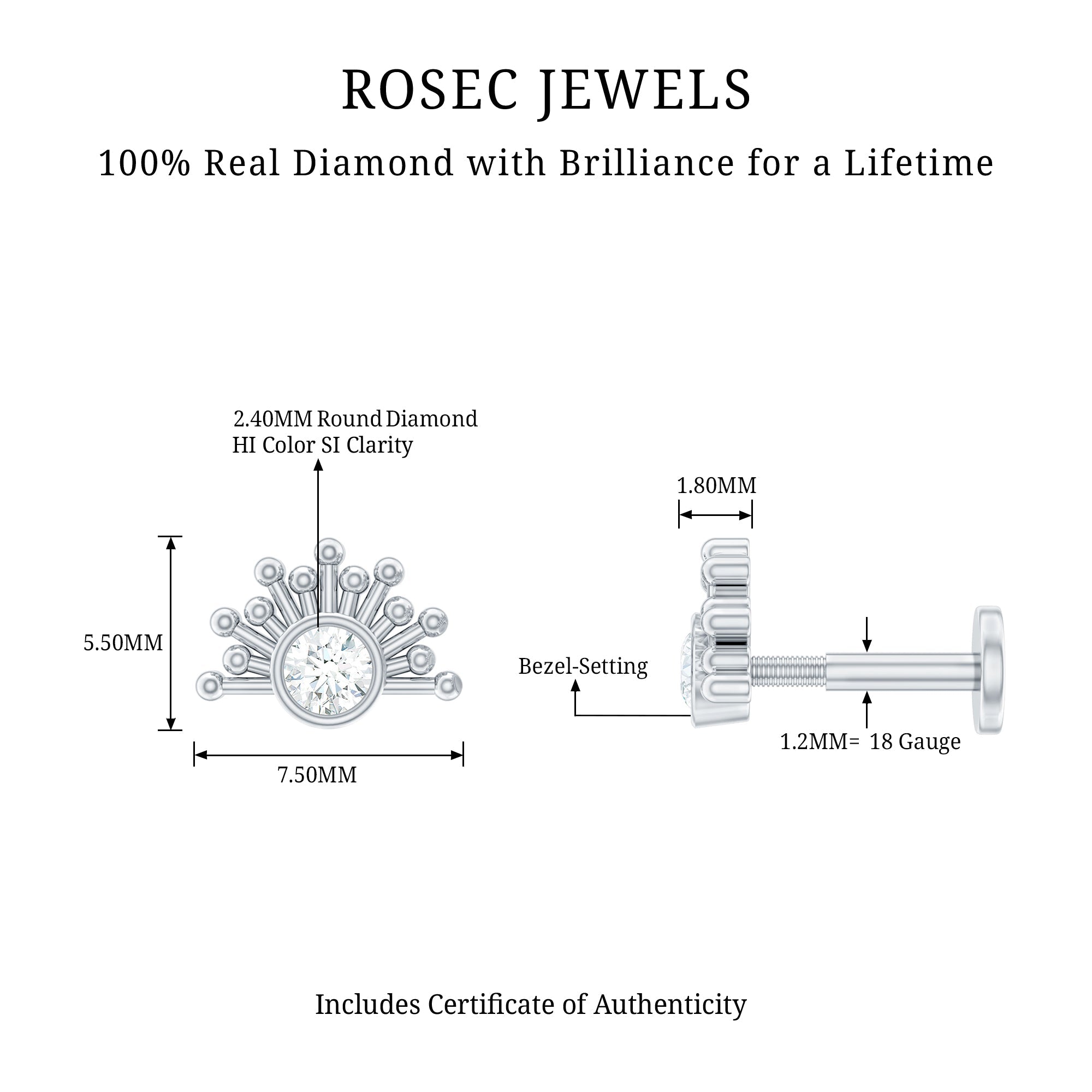 Bezel Set Diamond Gold Sunburst Earring for Helix Piercing ‐ Natural - ( HI-SI ) / 18K White Gold / Flat Back 5.5 MM