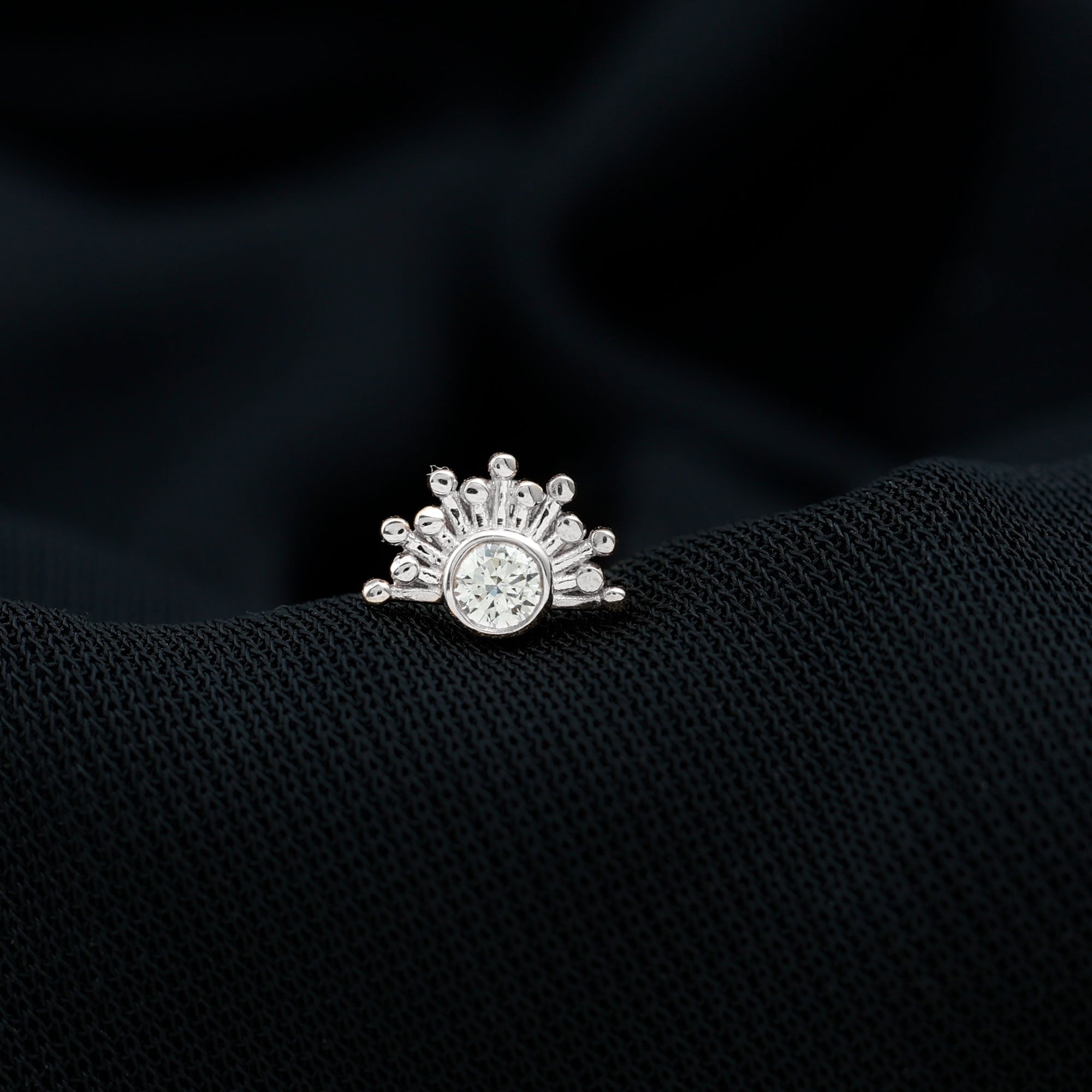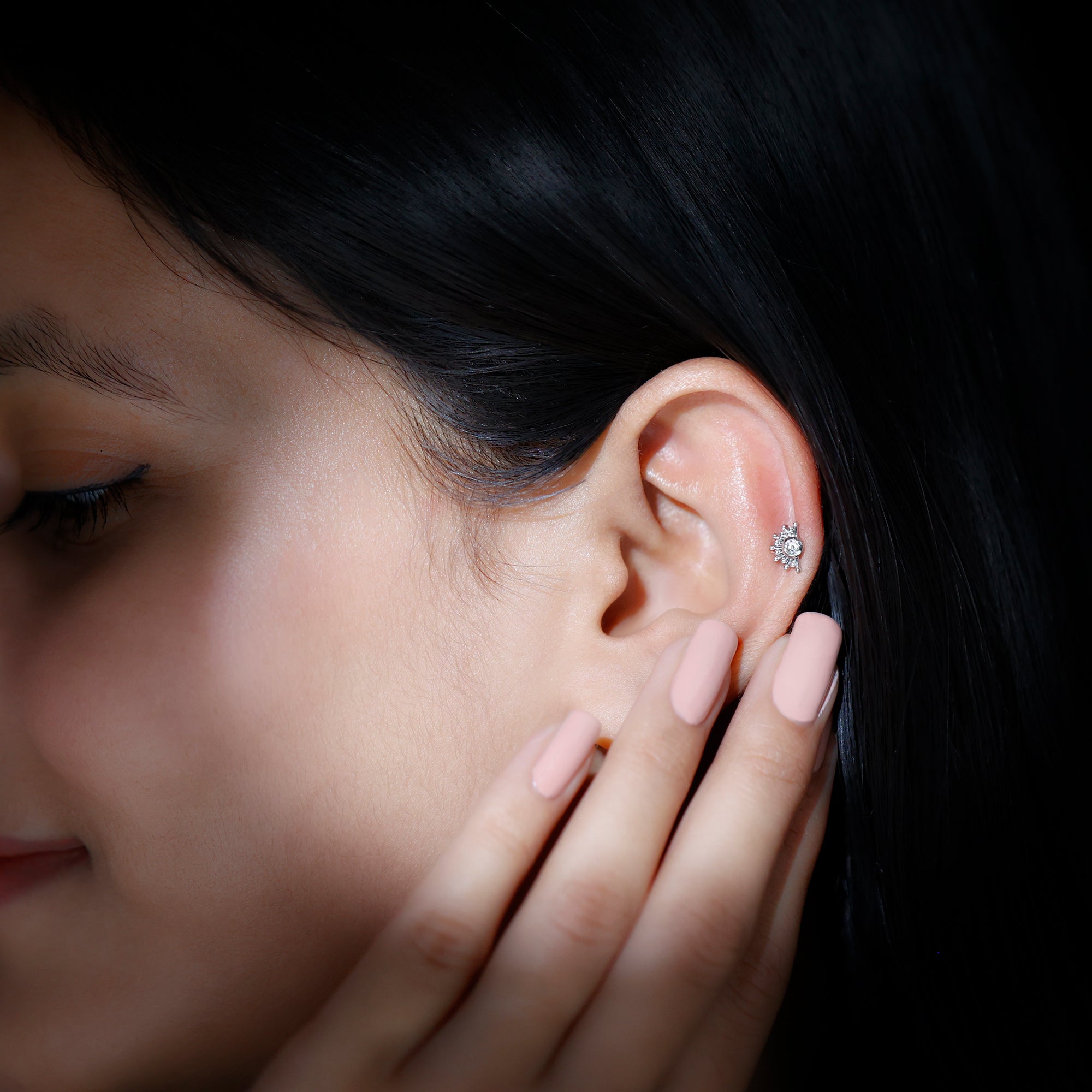 Bezel Set Diamond Gold Sunburst Earring for Helix Piercing ‐ Natural - ( HI-SI ) / 18K White Gold / Flat Back 4.5 MM