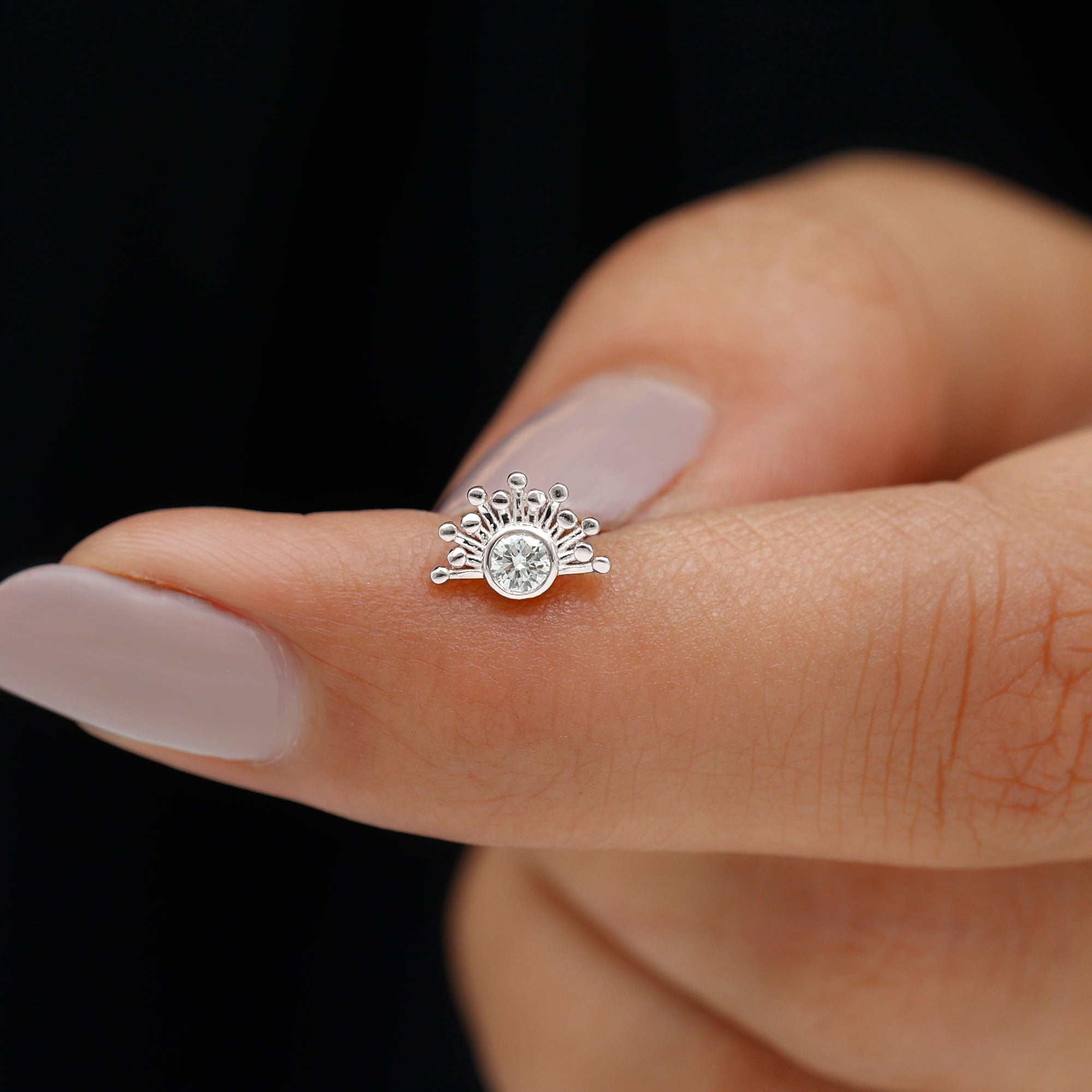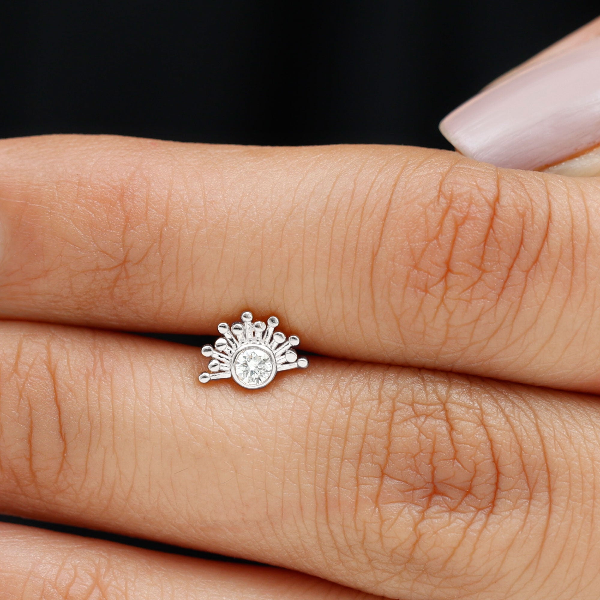 Bezel Set Diamond Gold Sunburst Earring for Helix Piercing ‐ Natural - ( HI-SI ) / 10K White Gold / Flat Back 5.0 MM