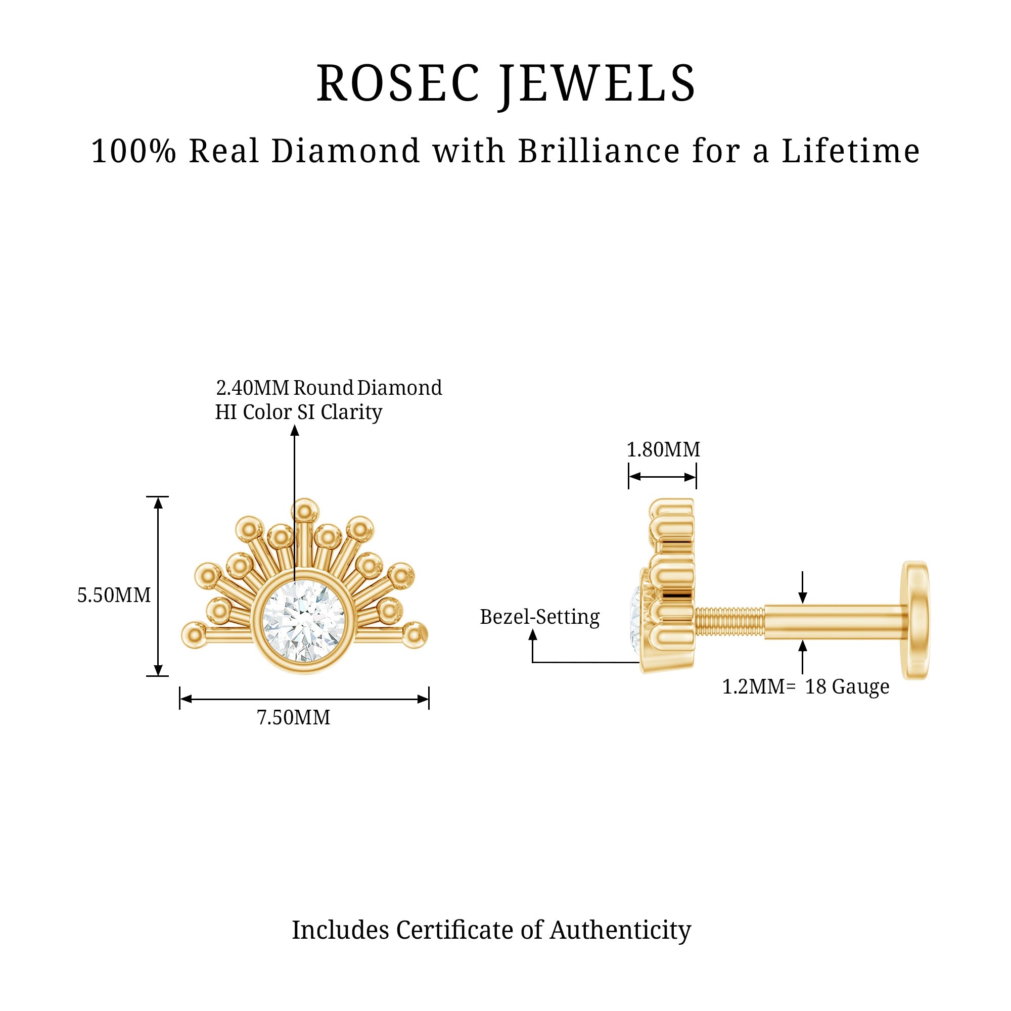 Bezel Set Diamond Gold Sunburst Earring for Helix Piercing ‐ Natural - ( HI-SI ) / 14K Yellow Gold / Flat Back 5.5 MM
