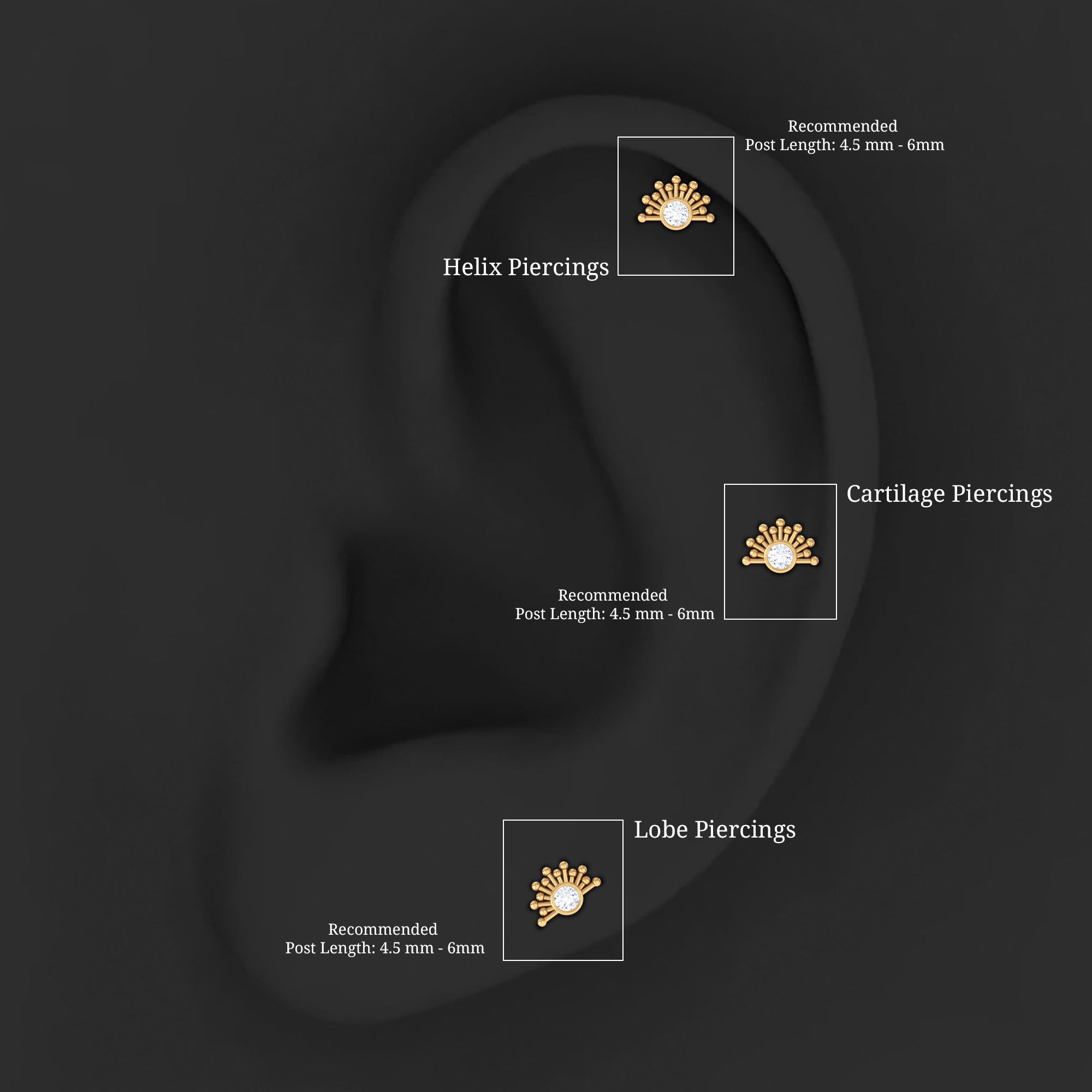 Bezel Set Diamond Gold Sunburst Earring for Helix Piercing