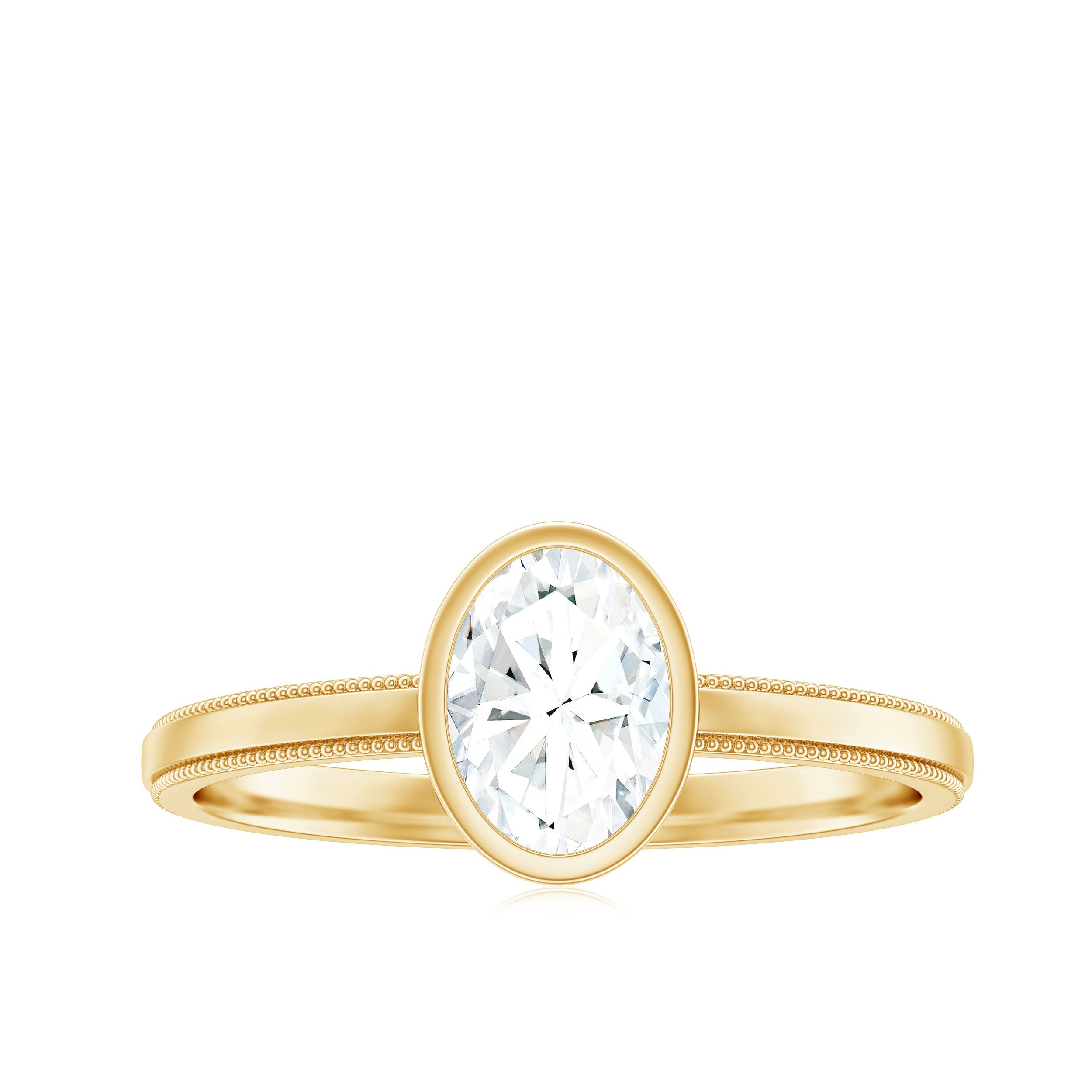 Bezel Set Oval Lab Grown Diamond Solitaire Ring ‐ Lab - ( EF-VS ) / 14K Yellow Gold / 5