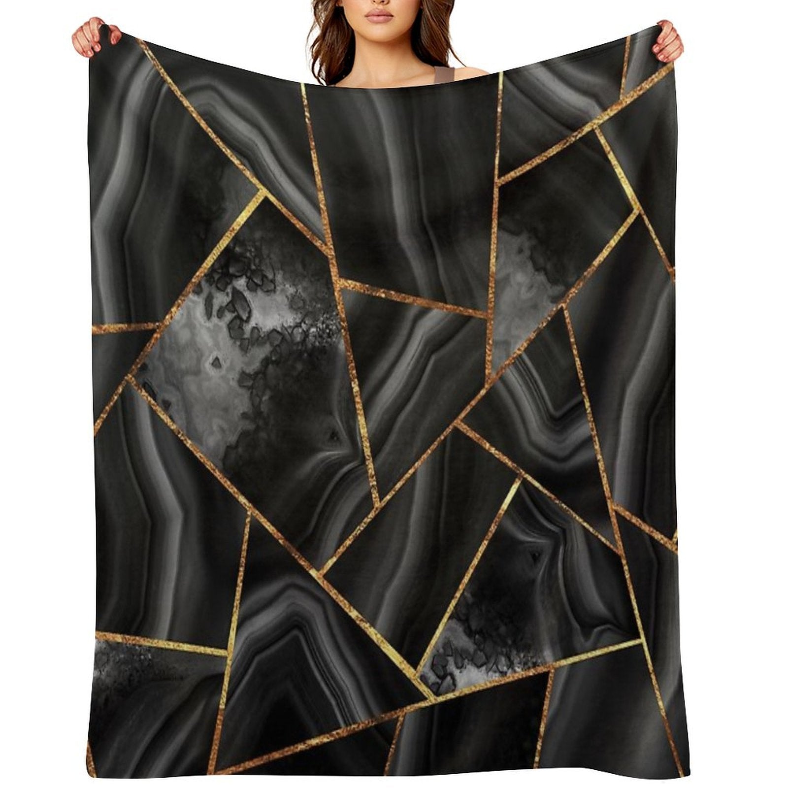 Black Night Agate Gold Geometric Glam #2 #geo #decor #art Throw Blanket ‐ Black Night Agate Gold Geometric Glam #2 #geo / 40"×50"