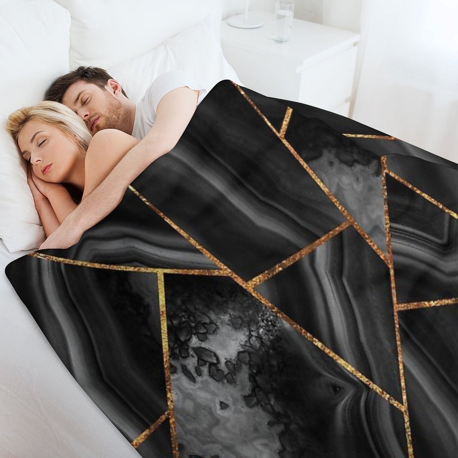 Black Night Agate Gold Geometric Glam #2 #geo #decor #art Throw Blanket ‐ Black Night Agate Gold Geometric Glam #2 #geo / 60"×80"