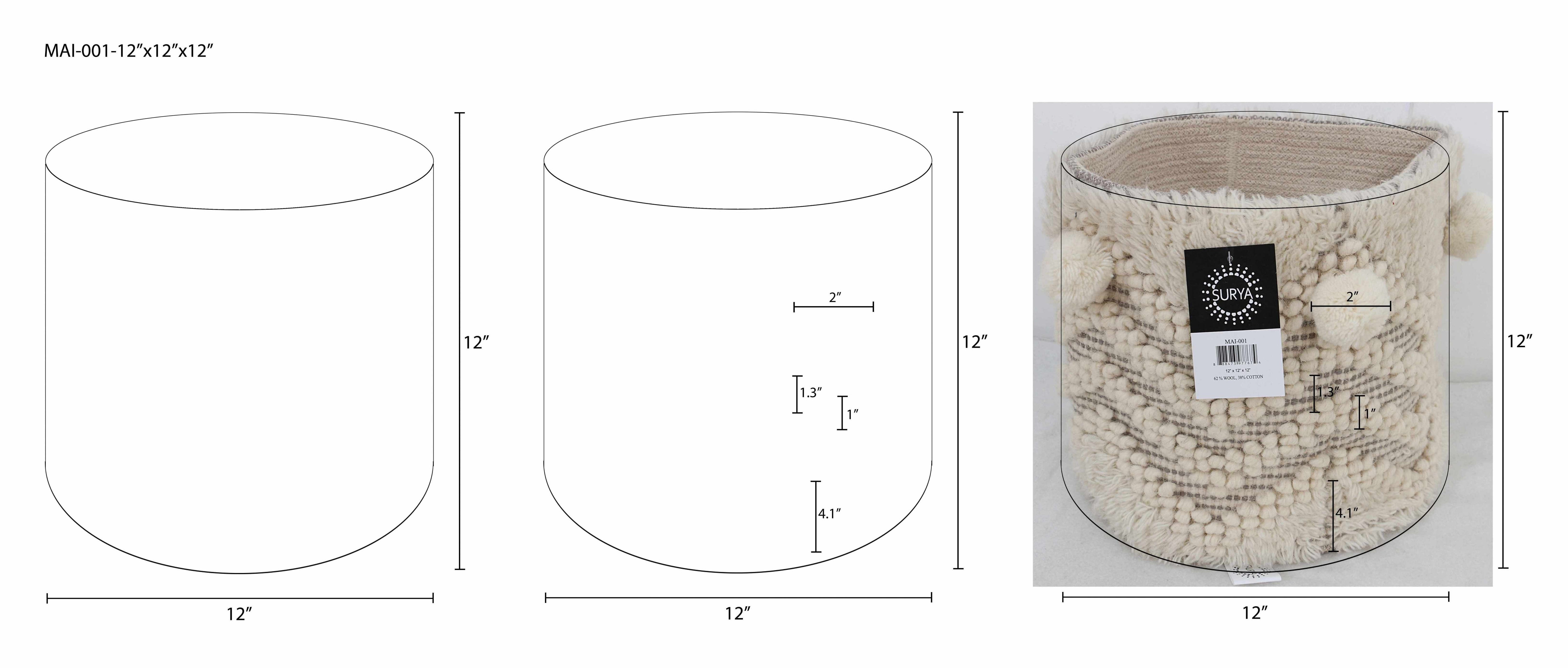 Bordon Ivory Textured Pom-Pom Stool ‐ 12"